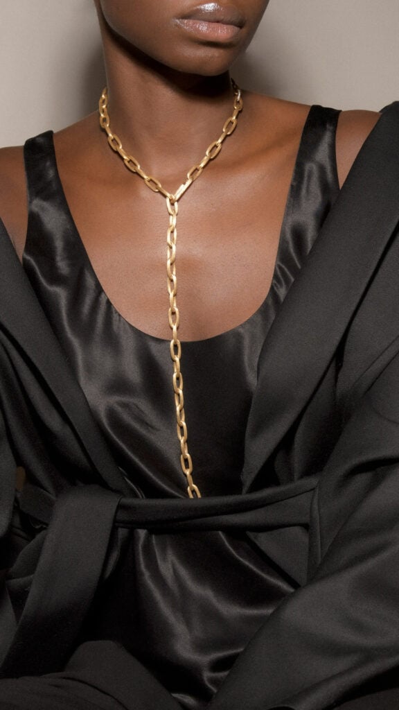 Chain jewellery, featuring striking details, with diamonds framing the yellow gold.