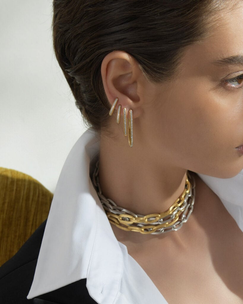 Let’s talk about everyday life, with the arrival of spring bringing out our tank tops – absolutely white – and jeans, a wardrobe staple that can never be missing. Just like jewellery.