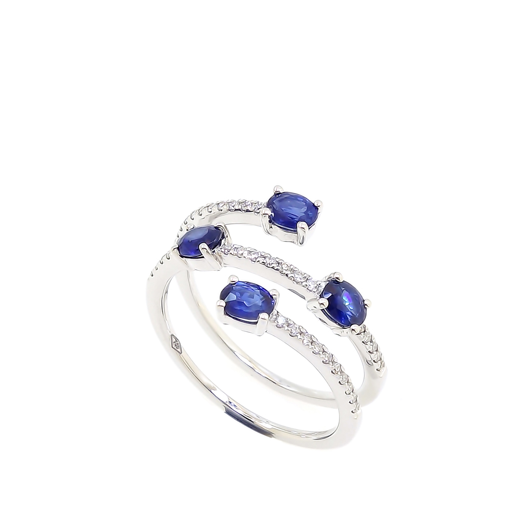 3 TURNS RING SAPPHIRES AND DIAMONDS 0.15 CT