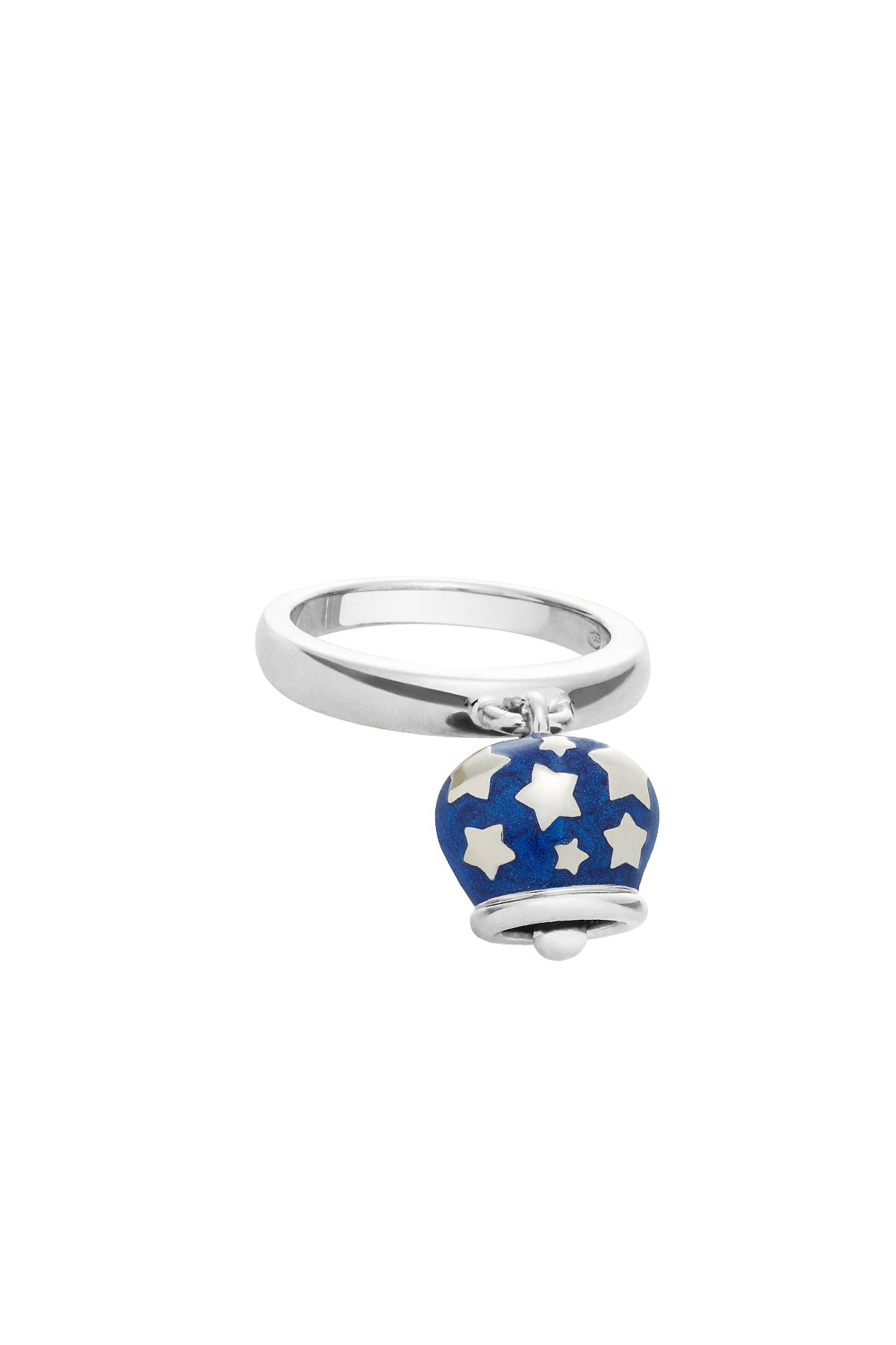 Small Et Voilà Campanella silver ring blue enamel stars on the back