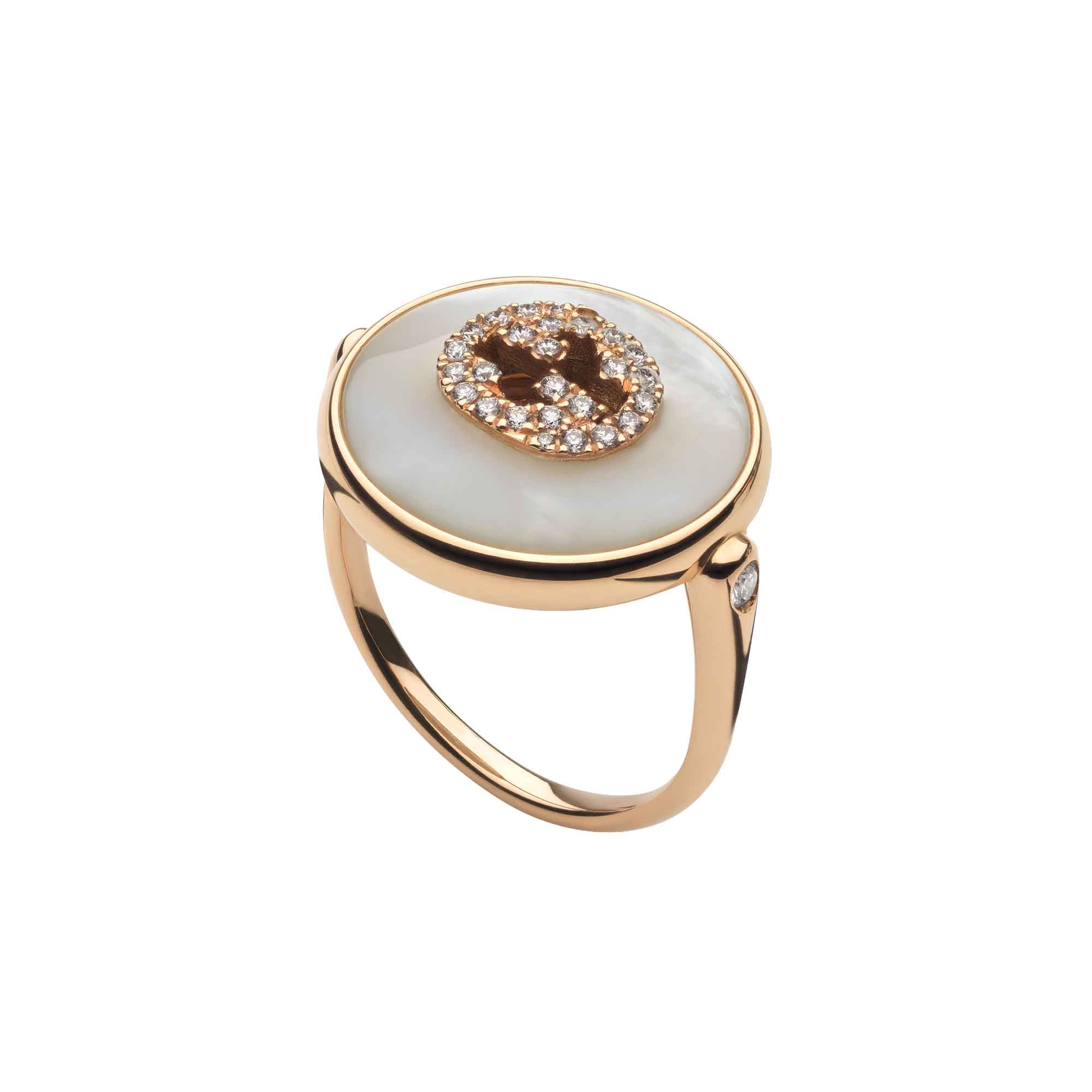 SKU: 786765 J85I0 807018k rose gold and green mother of pearl stone gucci ring.