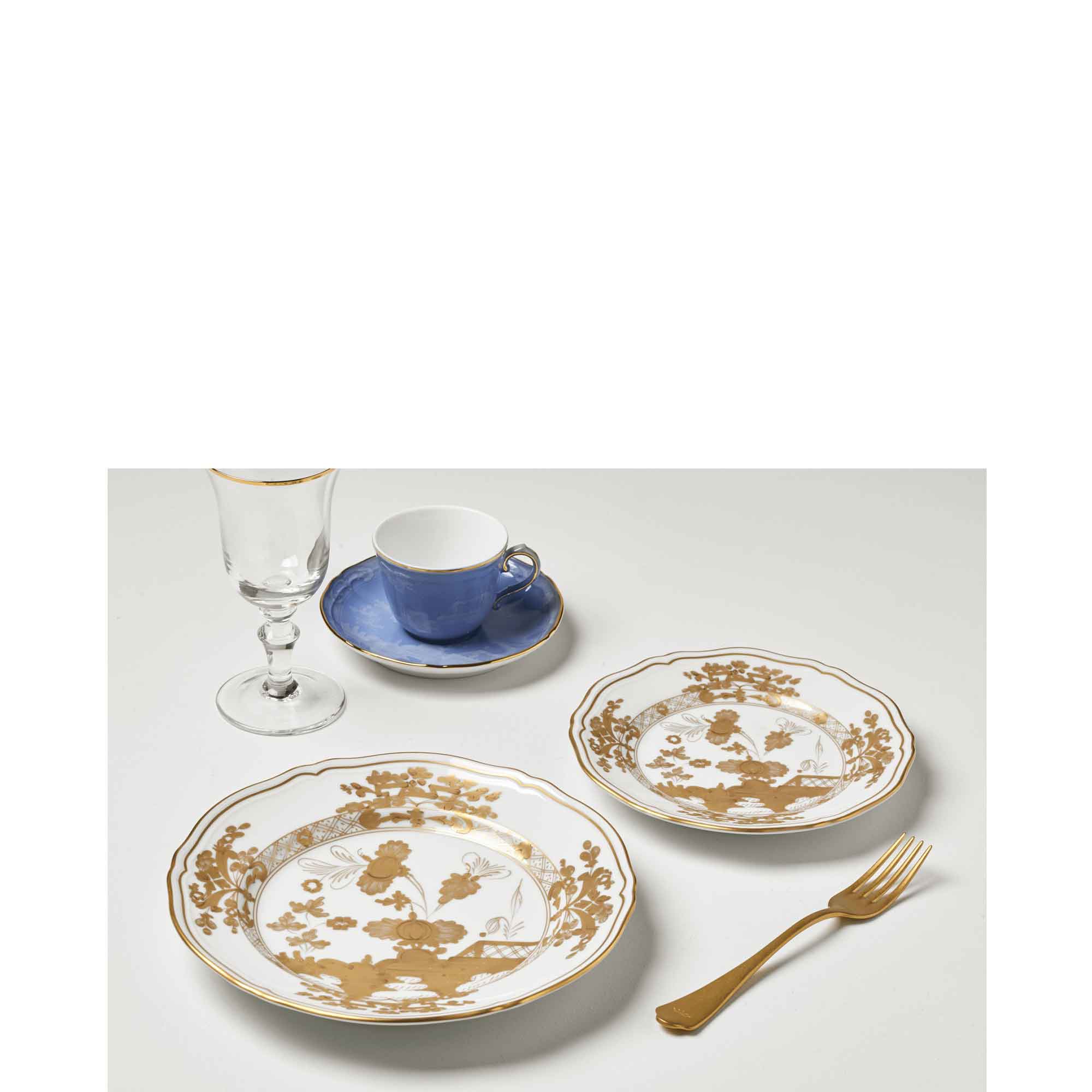 SKU: 210aurumPorcelain dessert plate with Aurum decoration in pure gold. Oriente Italiano Gold Collection.