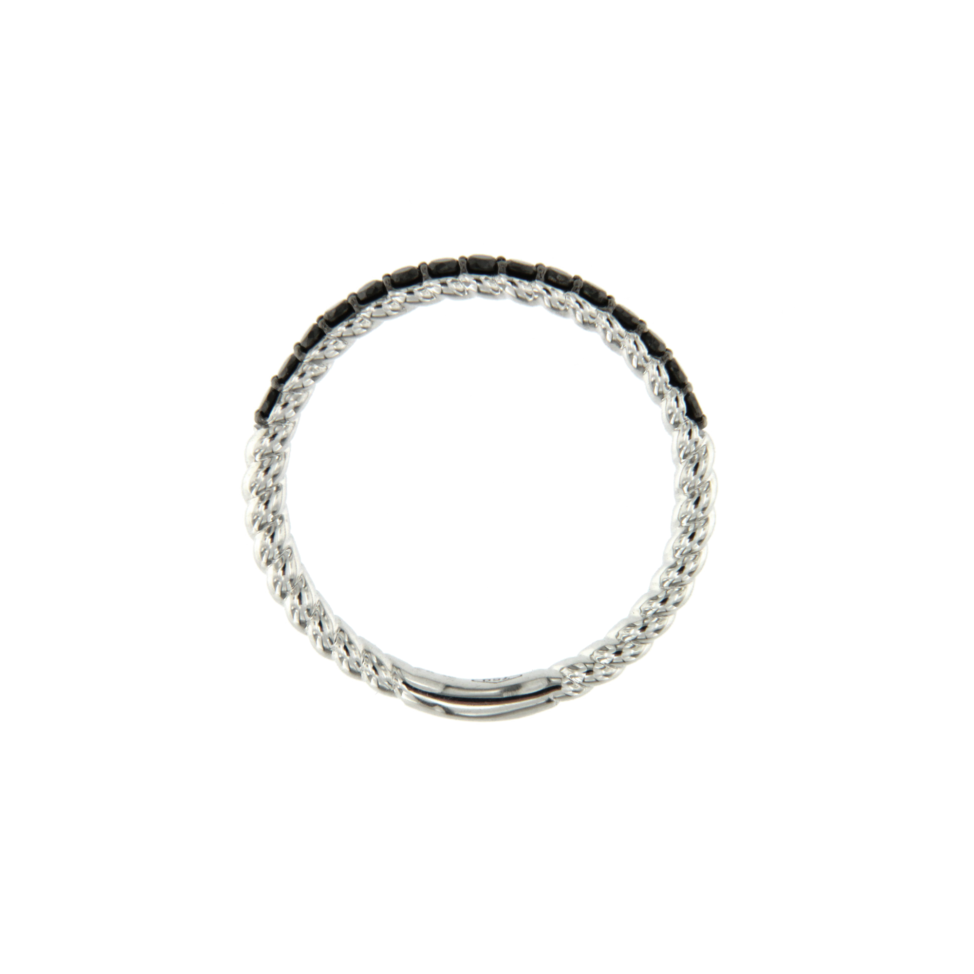 Through this Diamonds band ring, an intimate and personal relationship is sealed: the design is based on the purity of lines, authenticity and essentiality of forms. The minimalist shape of these jewels make them objects to wear at any time of the day. The Bon Ton verettes give the wearer a touch of brightness and unique color. The simplicity of the lines expresses all the beauty of diamonds and stones.