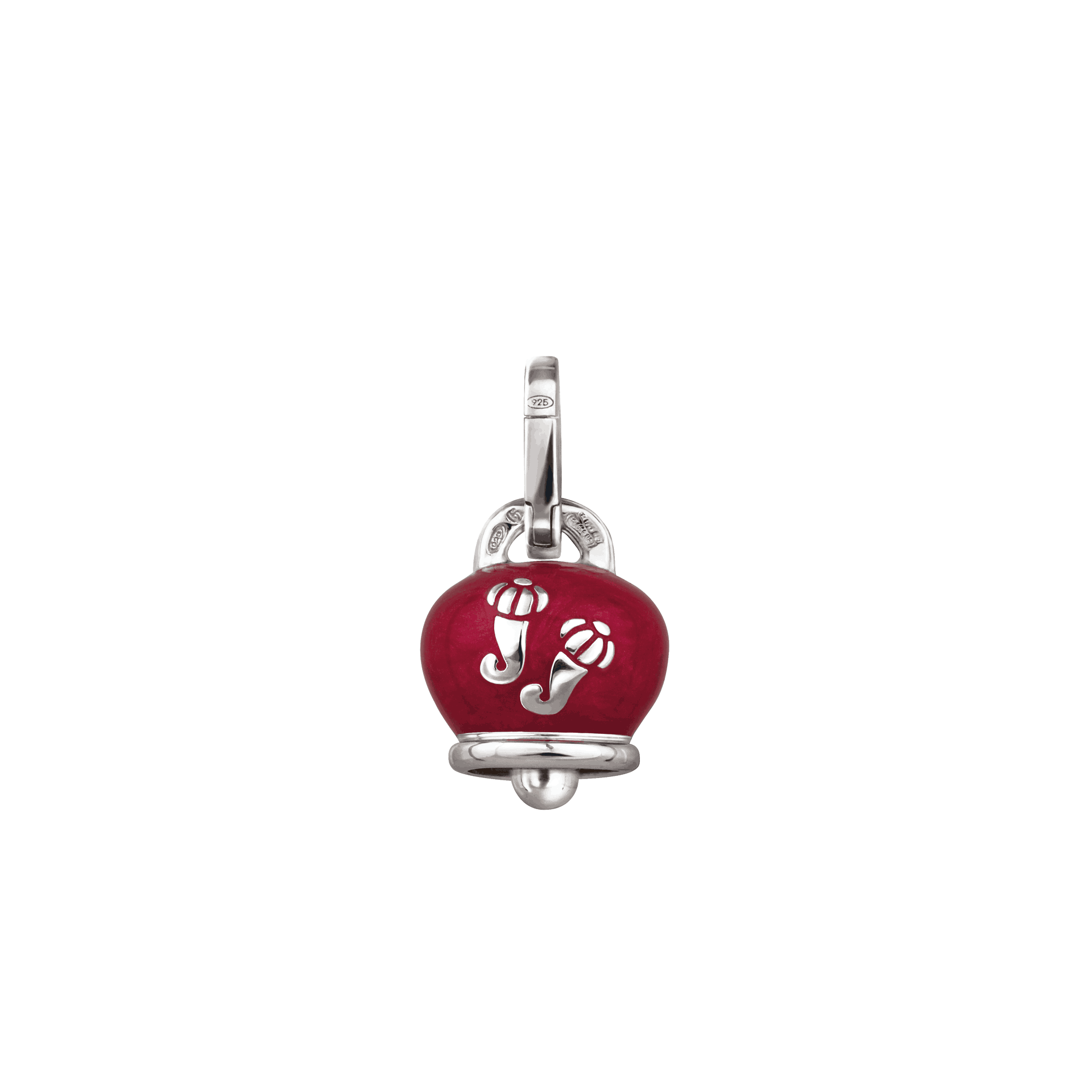 Medium campanella charm with horns in 925 silver and red enamel luminescent