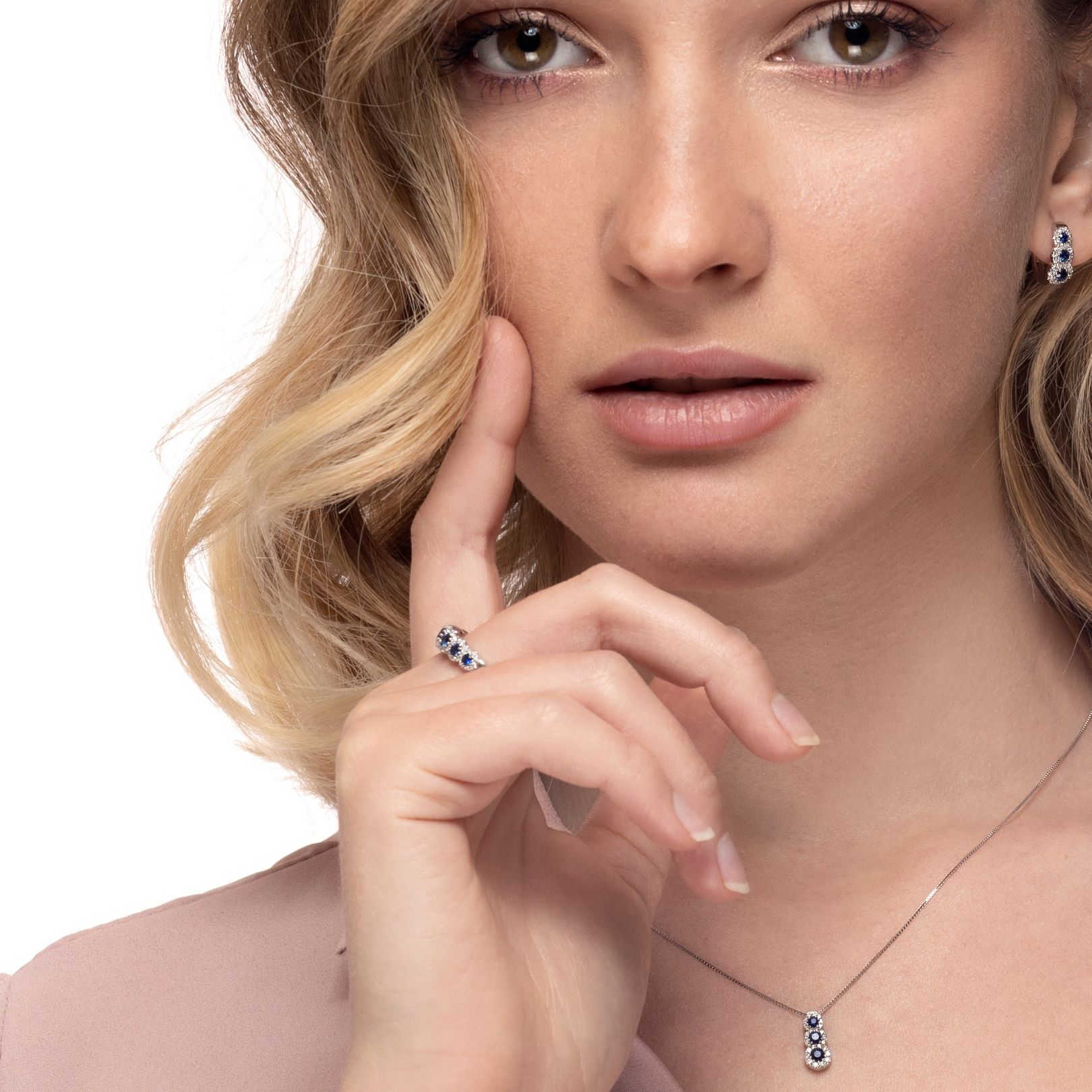 Bon Ton ring in white gold brilliants and sapphires is part of the classic jewelry with brilliants, rubies and natural sapphires intended for an audience of all ages with an excellent value for money. Each jewel is accompanied by a certificate of guarantee with photos and characteristics that attest to its quality and authenticity. All our jewels with brilliants and precious stones are accompanied by a certificate of authenticity.