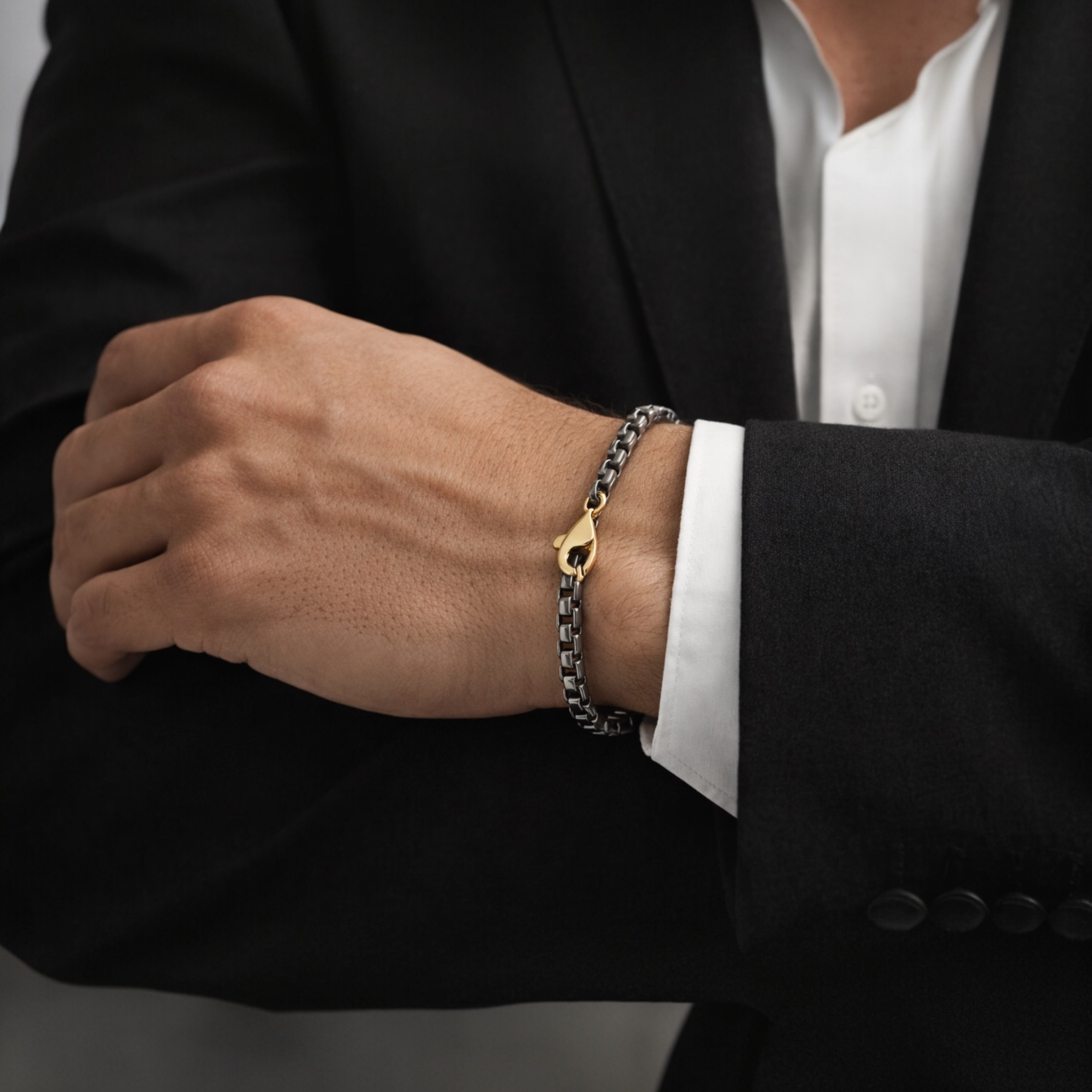 SKU: BRVEN/TITBracelet with rounded chain, titanium material and yellow gold hook, 0.80 g.