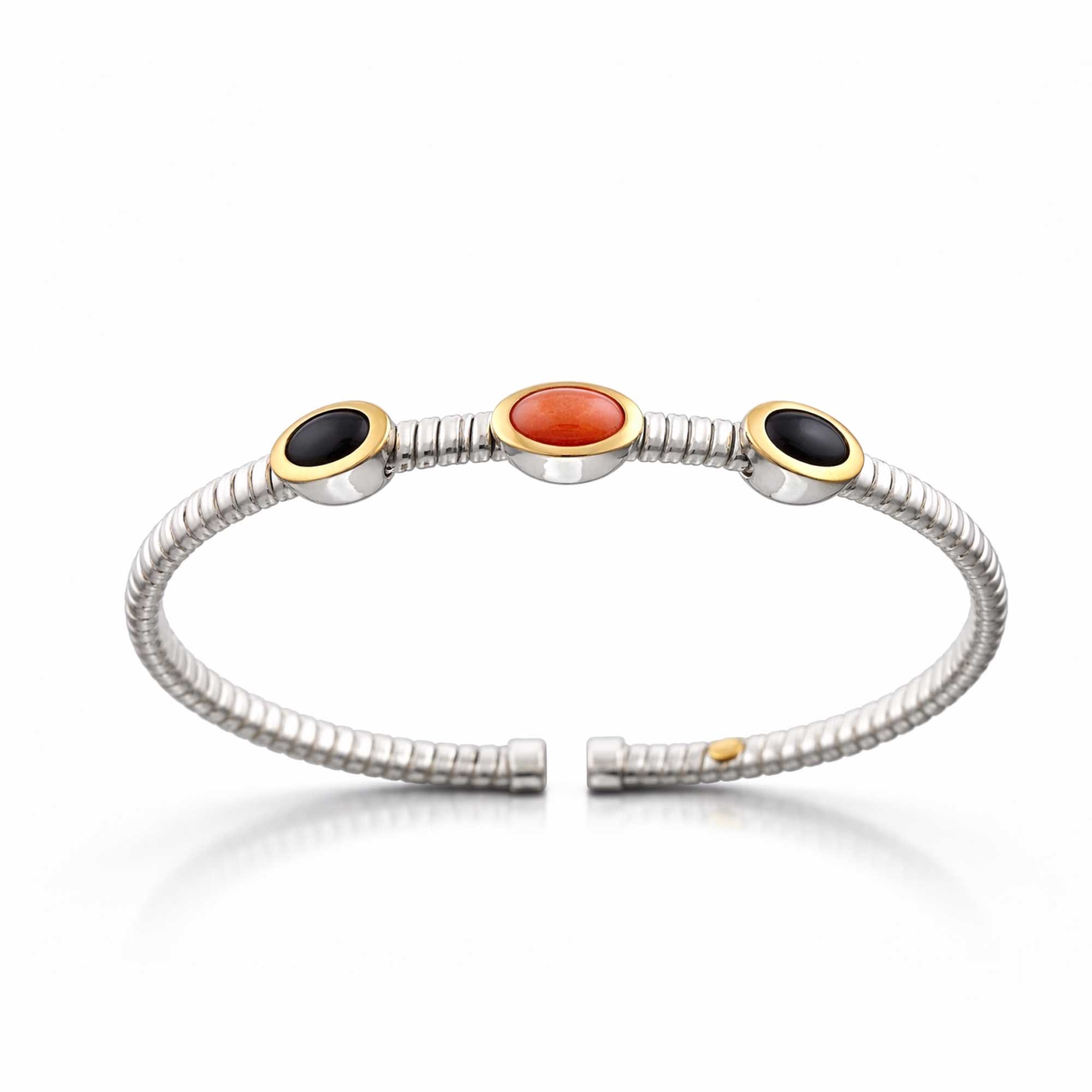 Tubogas silver bracelet gold onyx and coral stones