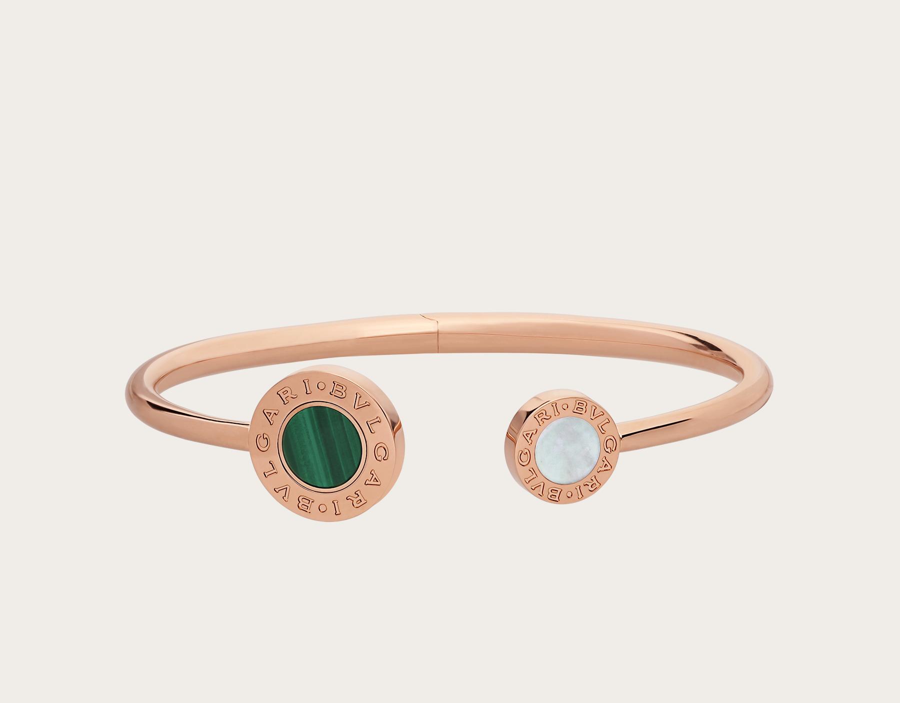 SKU: BR858422BVLGARI BVLGARI 18 kt rose gold flip bracelet set with mother-of-pearl, onyx and malachite elements