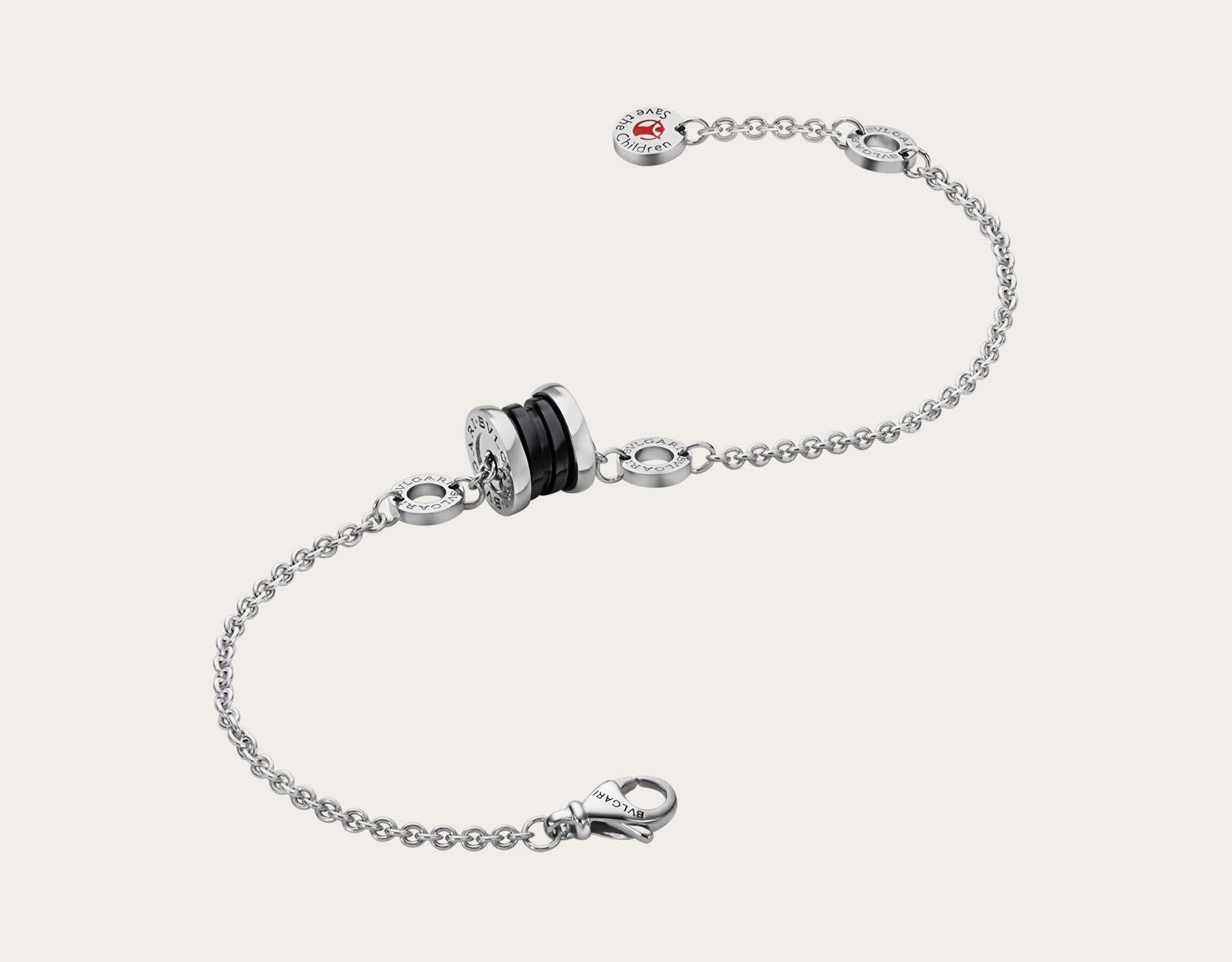 Honouring Bvlgari’s ongoing philanthropic partnership with Save the Children, the bracelet in sterling silver and black ceramic is inspired by the B.zero1 jewelry collection and engraved with the charity’s logo. For every piece of Bvlgari’s Save the Children jewelry collection sold, a part of the proceeds will be donated to fund programs that provide support and opportunities to the world’s most vulnerable children and youth.
