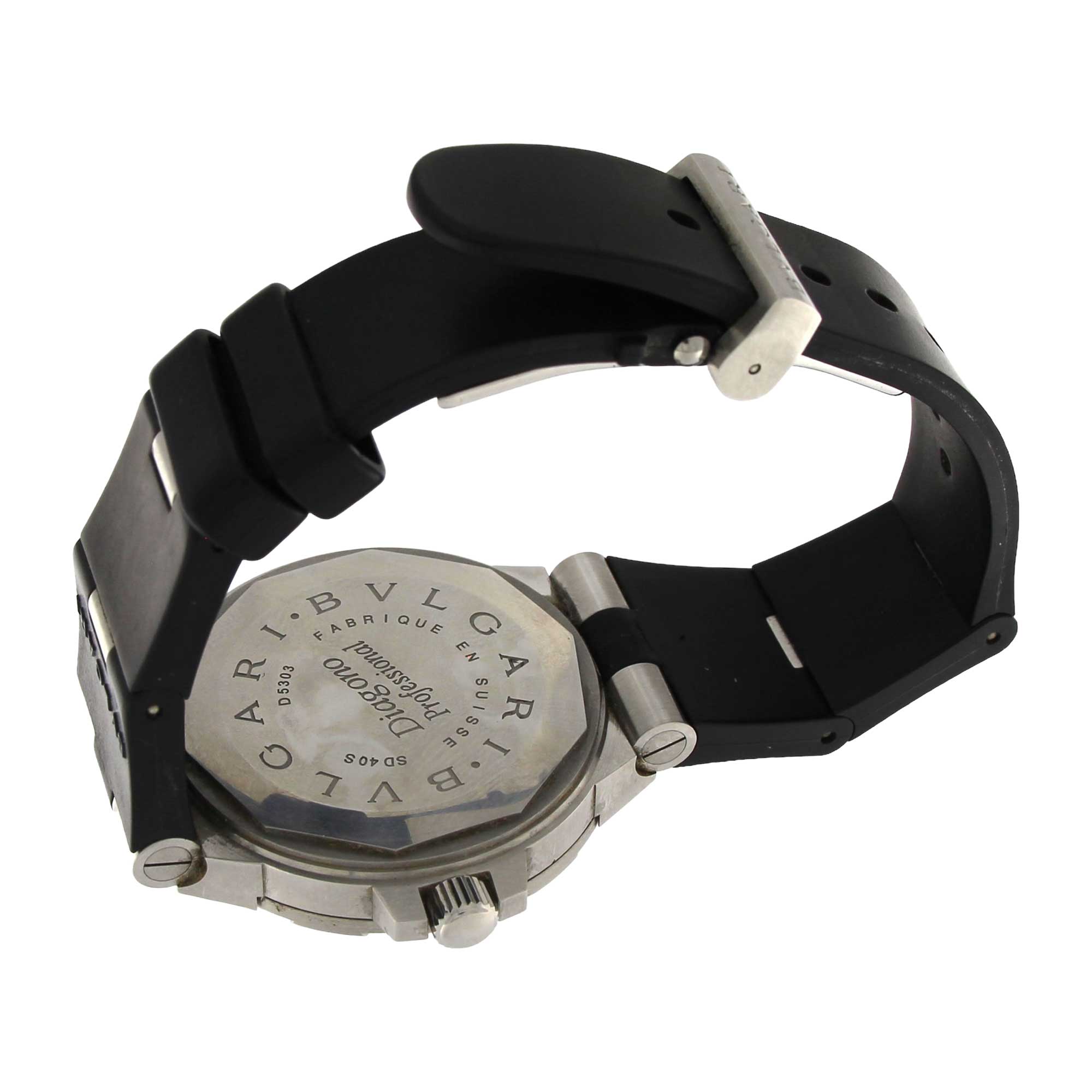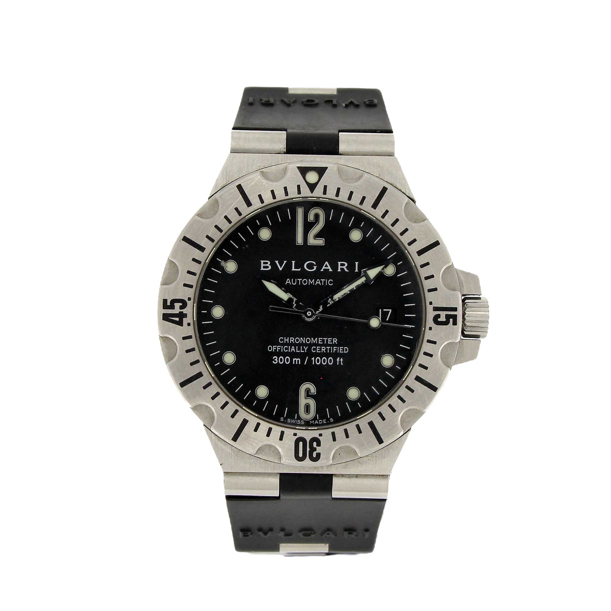 Bulgari diagonal professional steel with rubber strap.