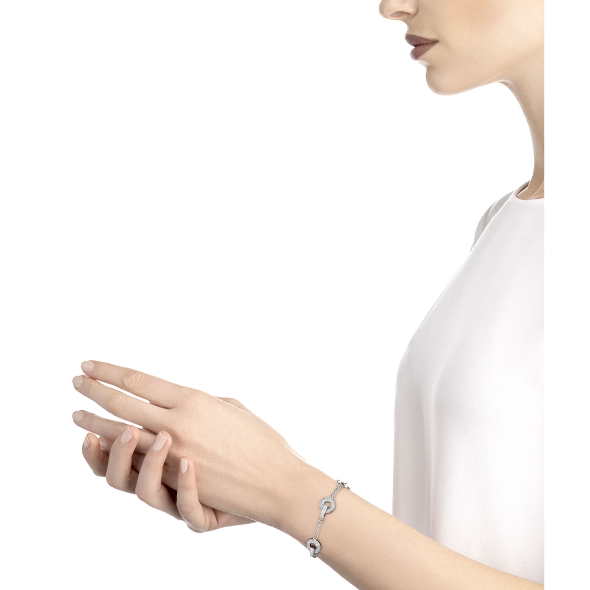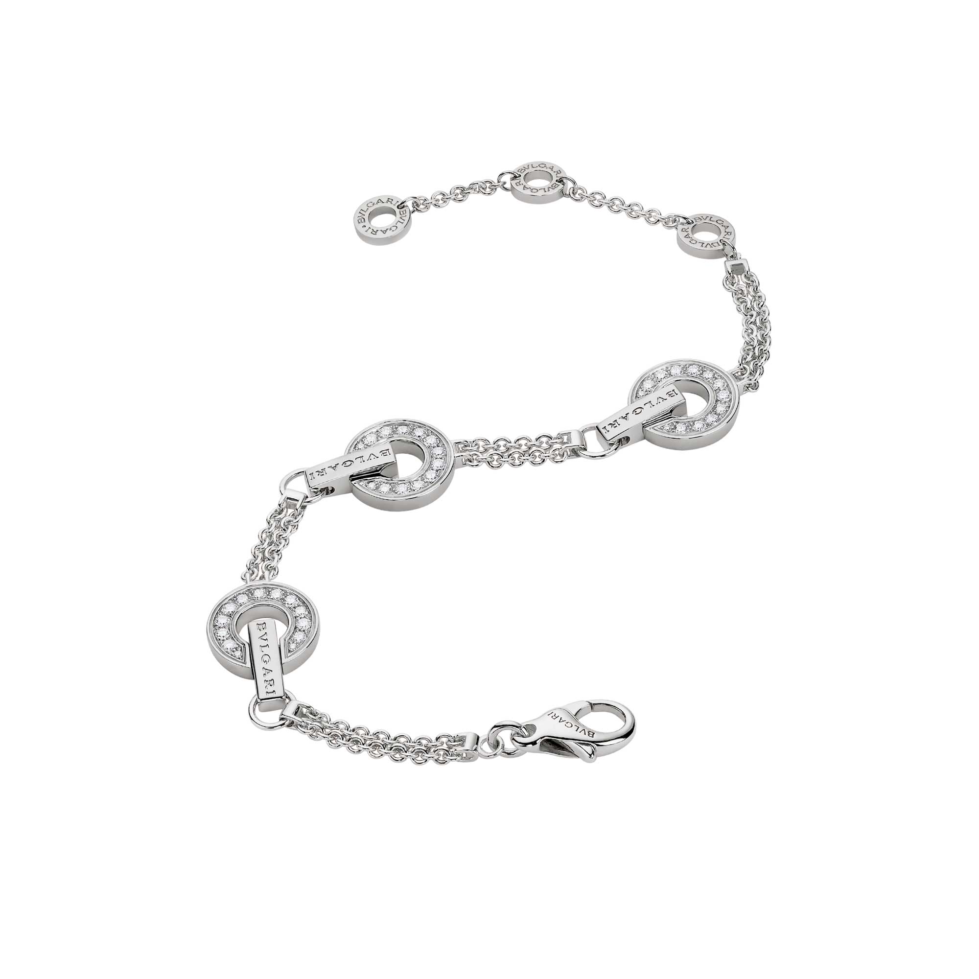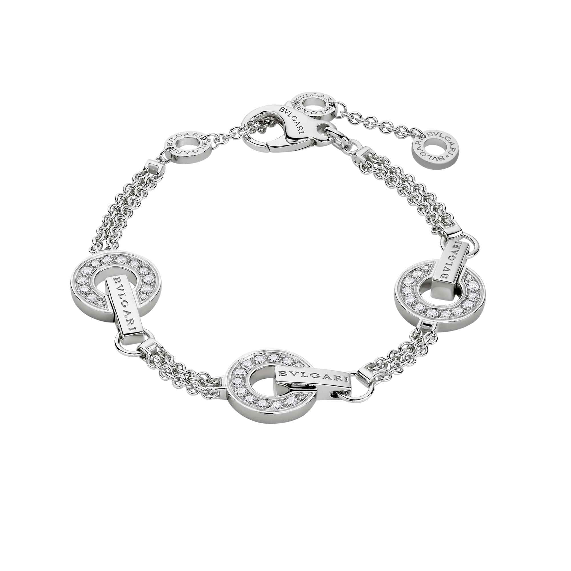 Grown from the Roman roots of the brand into an elegant fusion of culture and modernity, the BVLGARI BVLGARI bracelet is an effervescent and contemporary statement of classiness. The collection’s iconic circular motif has here evolved into a fresh openwork design, blending striking shapes with Bvlgari’s unmatched playful spirit and distinctive use of diamonds.