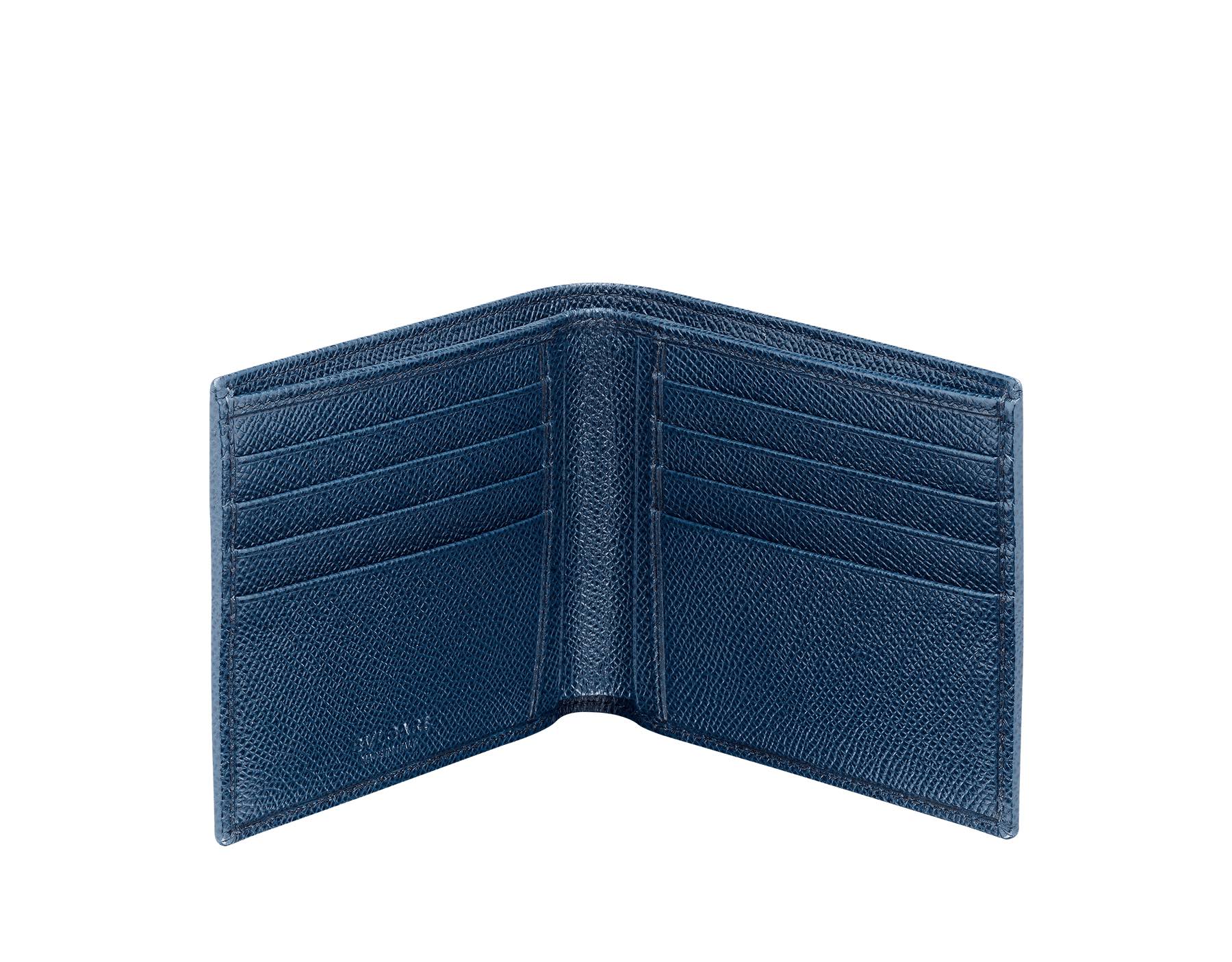 SKU: 39320Wallet hipster for men in denim sapphire grain calf leather with brass palladium plated hardware featuring the BVLGARI BVLGARI motif. Eight credit card slots, two bill compartments and four inside compartments.