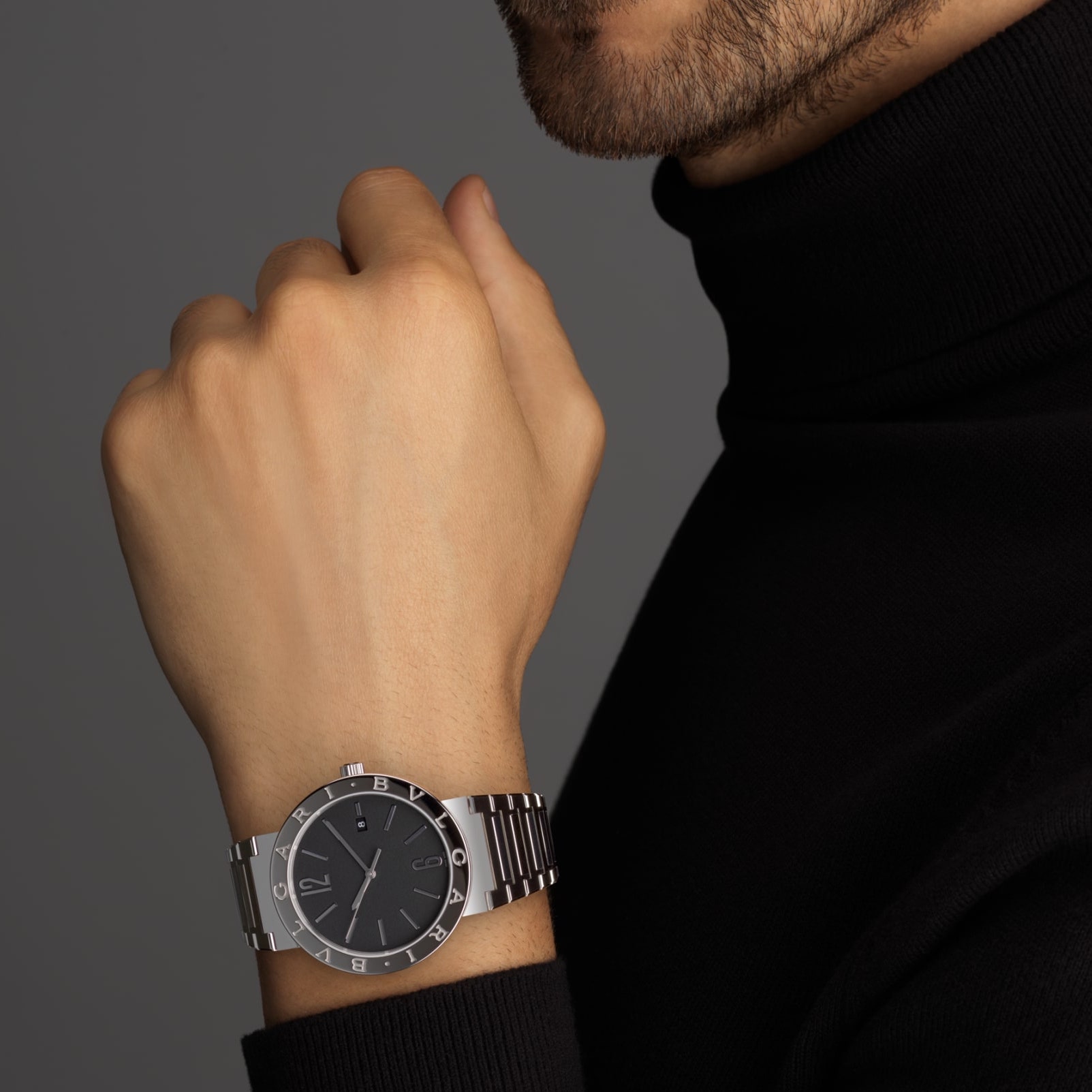 Bvlgari bvlgari solotempo watch with self-winding mechanical movement and date display, BVL 191 calibre – Solotempo with Côtes de Genève finishing, anglage and colimaçonnage, 41 mm stainless steel case, stainless steel bezel with double logo, stainless steel crown, black dial and stainless steel folding clasp bracelet.