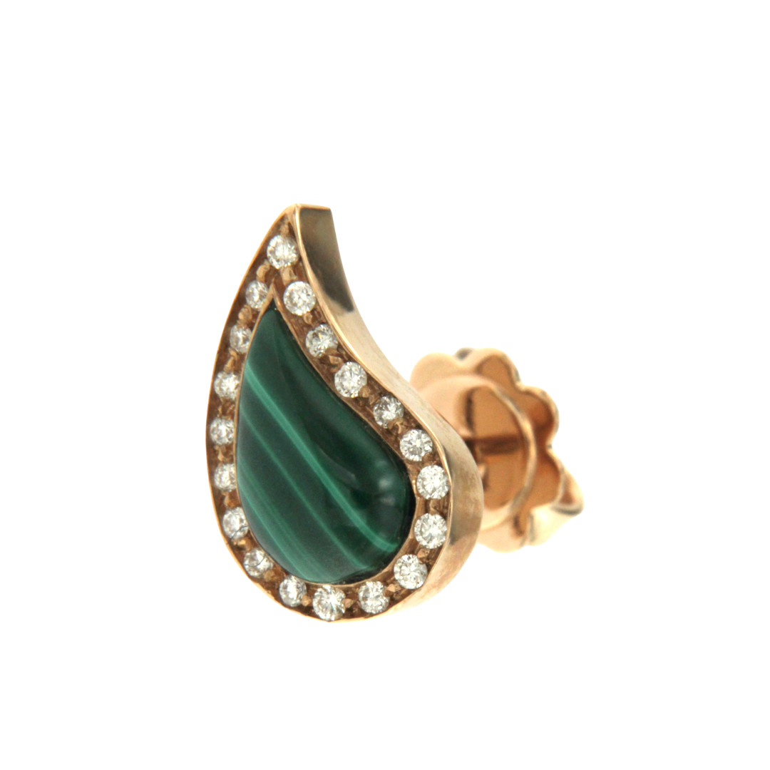 Cashmere Earrings Rose Gold Diamonds and Malachite, are distinguished by the brightness and mastery in the realization, are part of the classic jewelry intended for an audience of all ages with an excellent value for money. Each jewel accompanied by a certificate of guarantee.