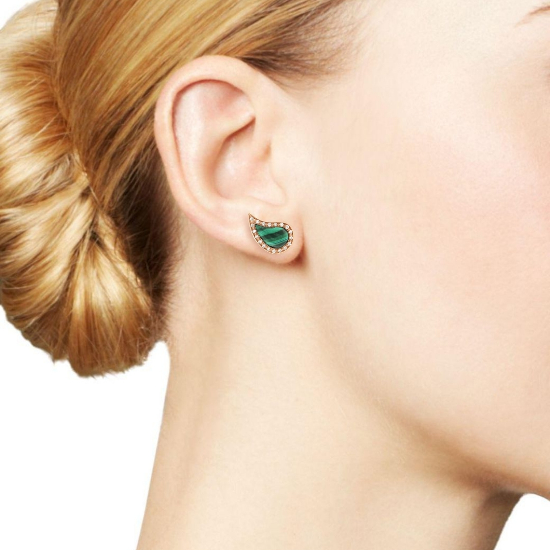Cashmere Earrings Rose Gold Diamonds and Malachite