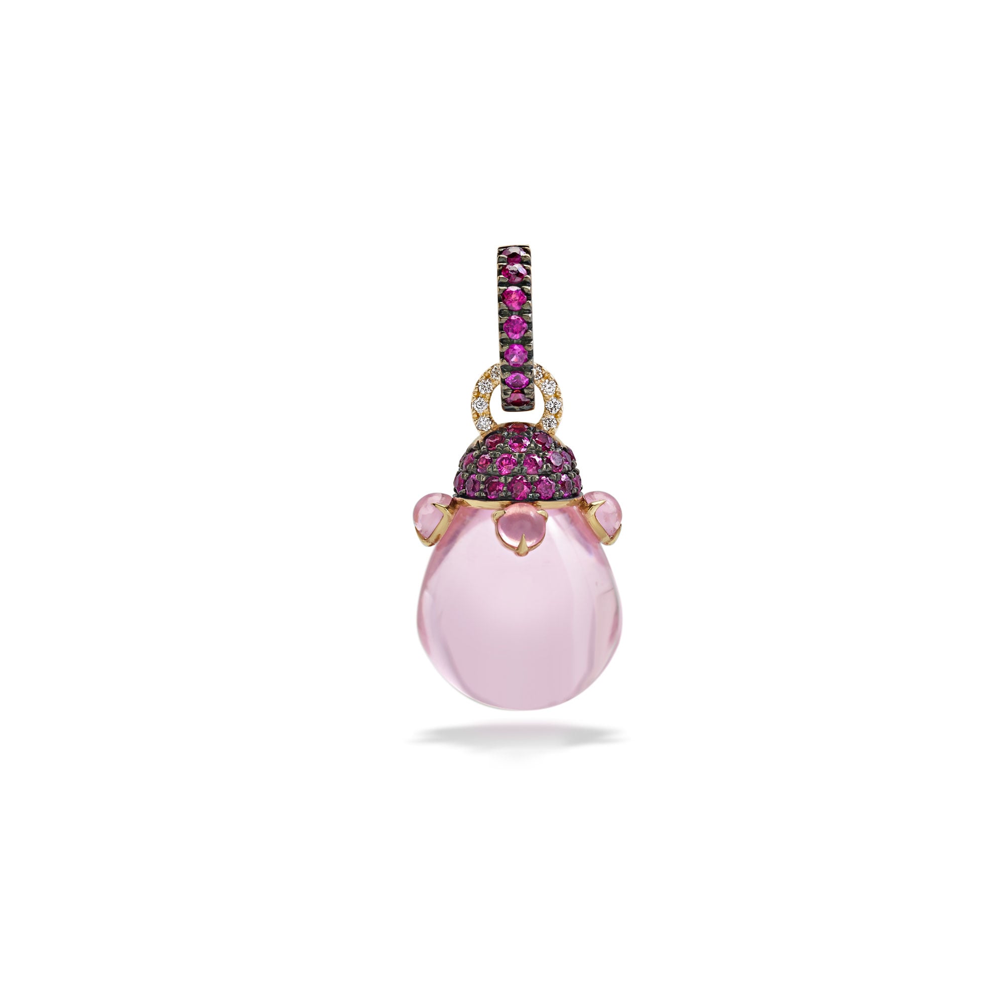 SKU: 41874Joyful charm in 18kt pink gold, diamonds, pink sapphires and pearls in pink-colored crystal.