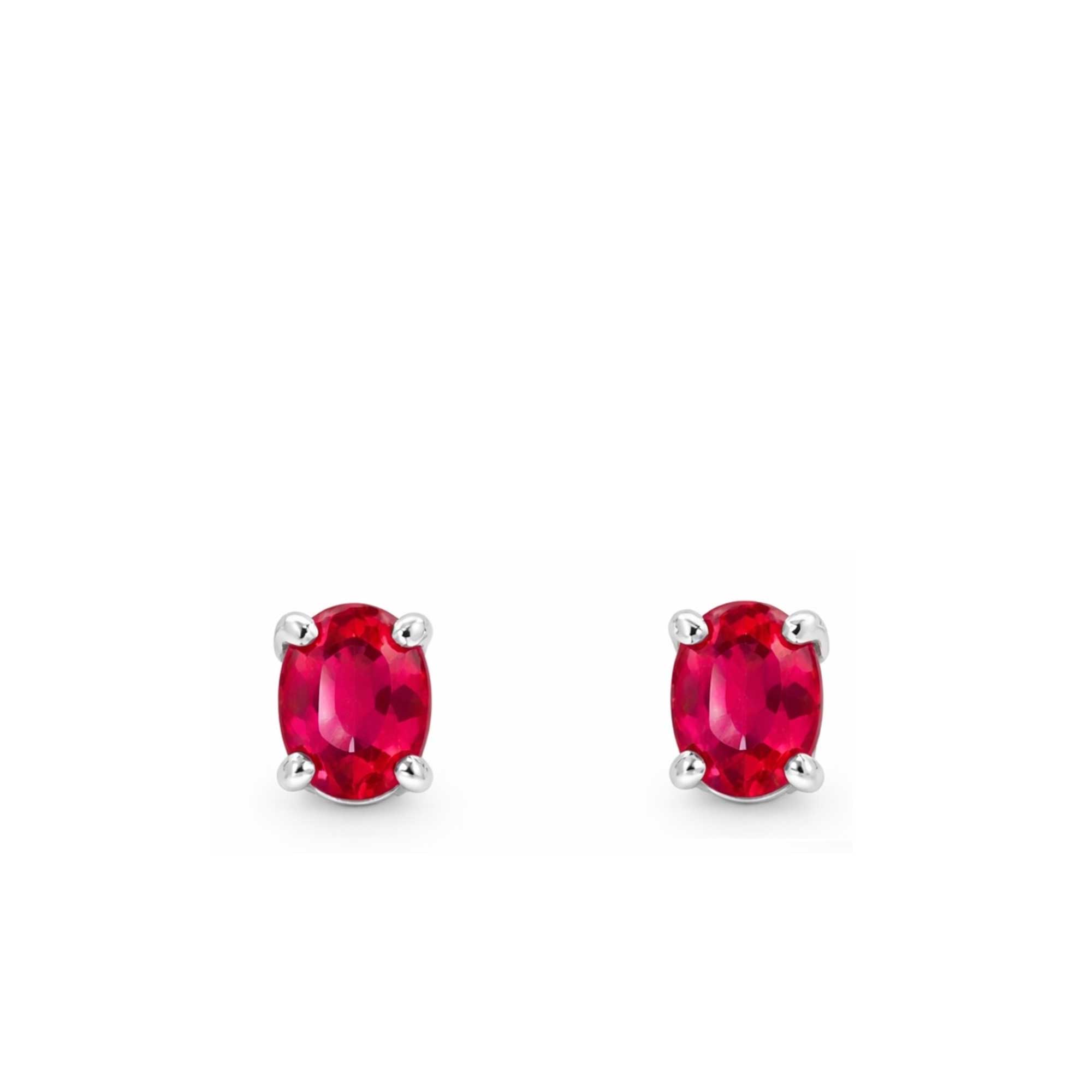 We create collections of classic, manufactured jewels, defined by a very high quality of the worked stones. From here Trilogy earrings in brilliant rubies color
