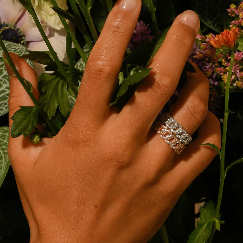 rose gold 18 Kt ring with 130 brilliant cut diamonds for a total weight of 0,81 ct