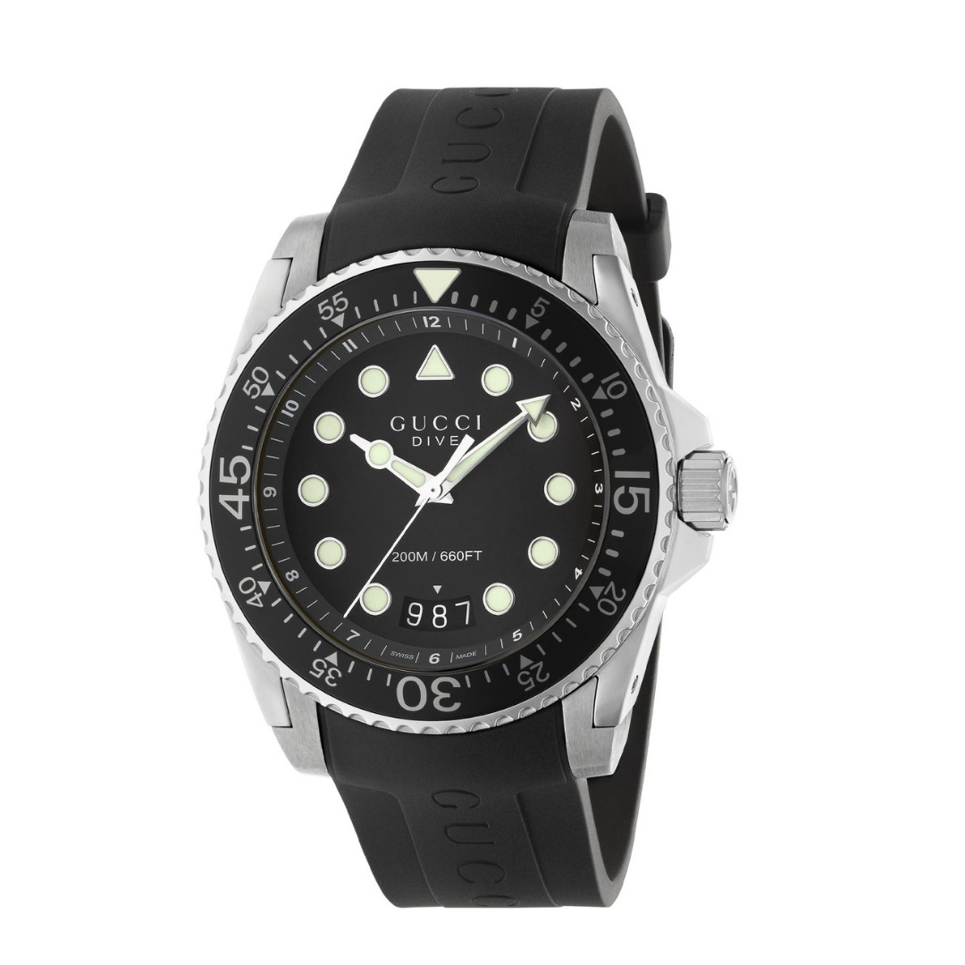 The Gucci Dive collection offers an eccentric twist to Gucci’s most sporty timepiece. The traditionally rugged feel of these performance watches has been enhanced with contemporary House motifs.