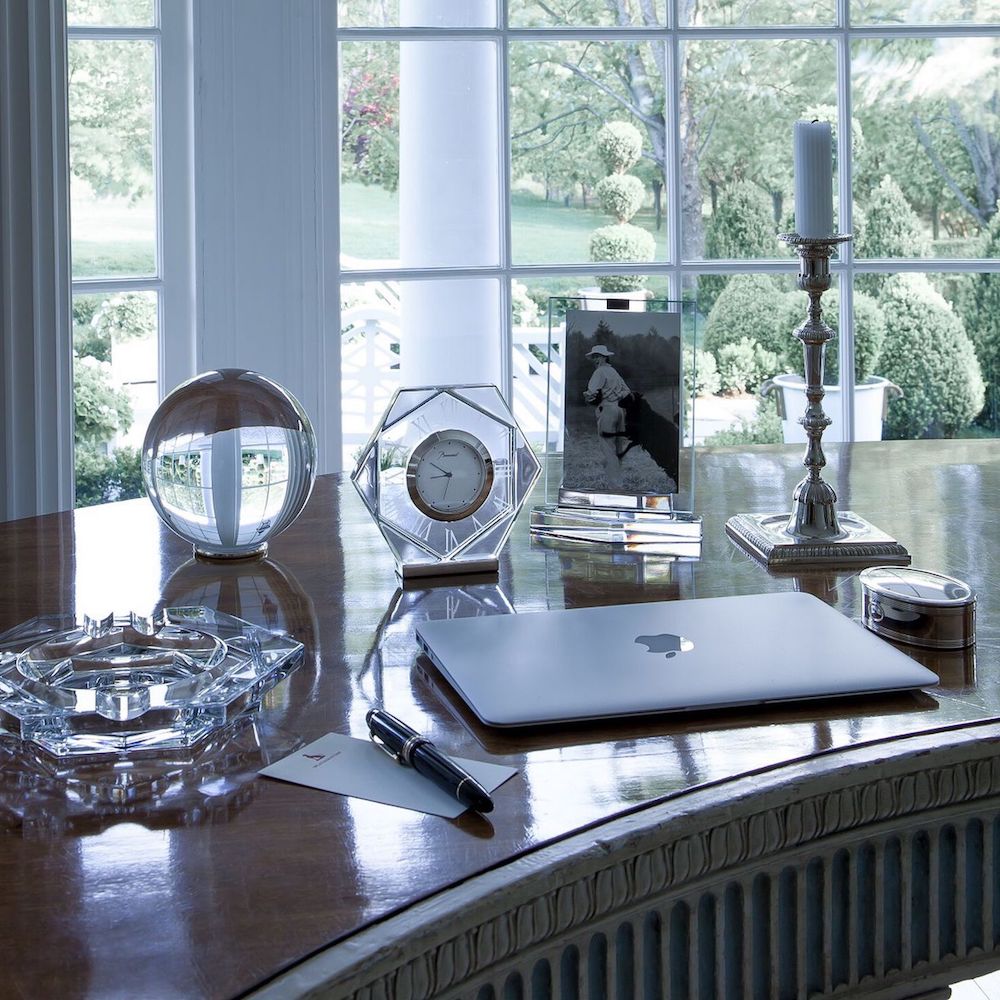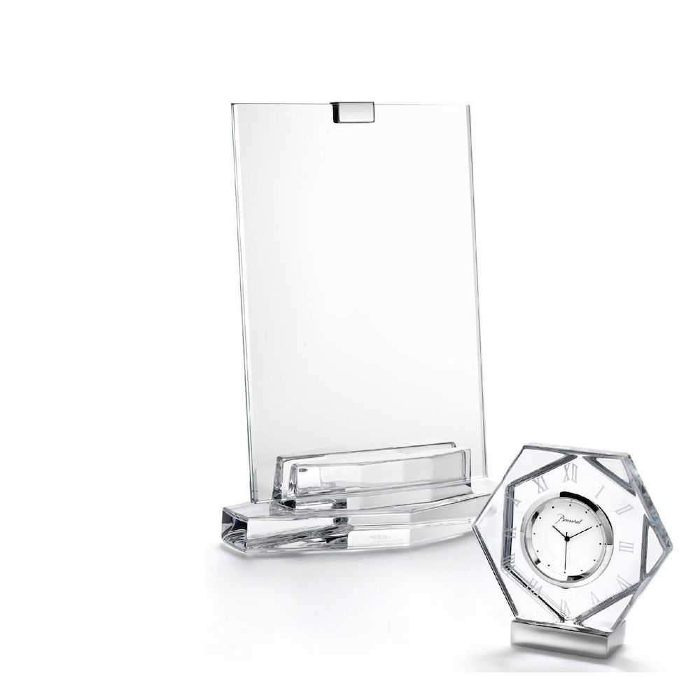 Baccarat’s Clear crystal Harcourt Abysse photo frame underscores Baccarat’s stunning mastery of form.