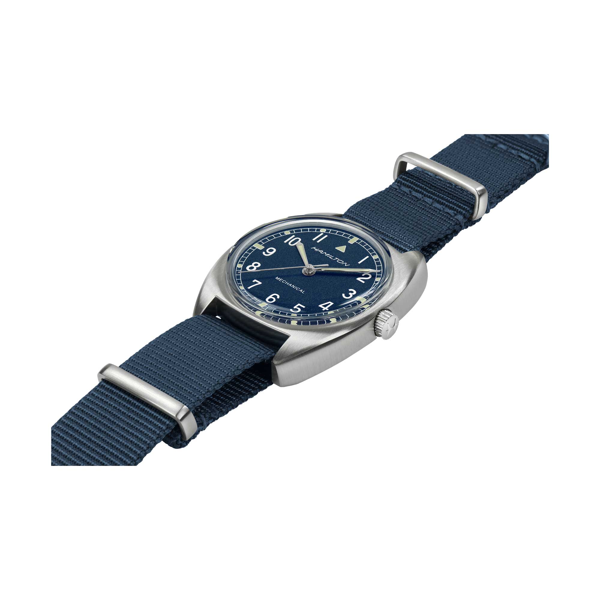 Our stunning shade of blue takes this re-issue of the 1970s Royal Air Force high into the skies. Wear the Khaki Pilot Pioneer Mechanical and pay homage to Hamilton’s history of timing the skies.