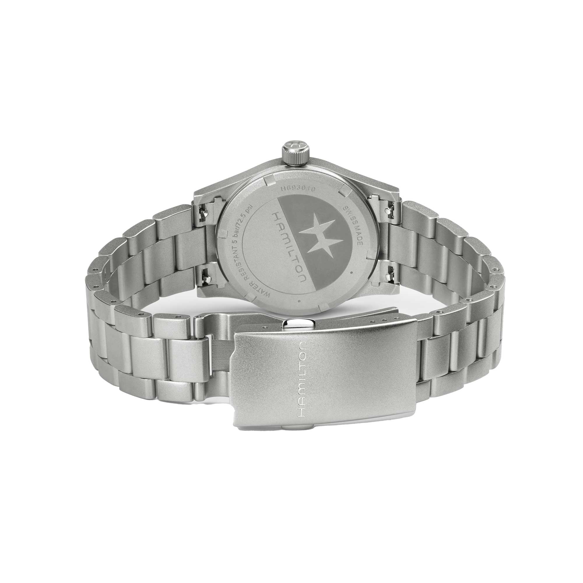 Primed for adventure, the Khaki Field Quartz is a reliable and rugged companion ready for exploration. Taking inspiration from Hamilton’s reputation for precision, innovation and utility-focused design, the Khaki Field Quartz pairs a timeless 33mm black dial with a modern metal bracelet. Discover our Khaki Field collection.