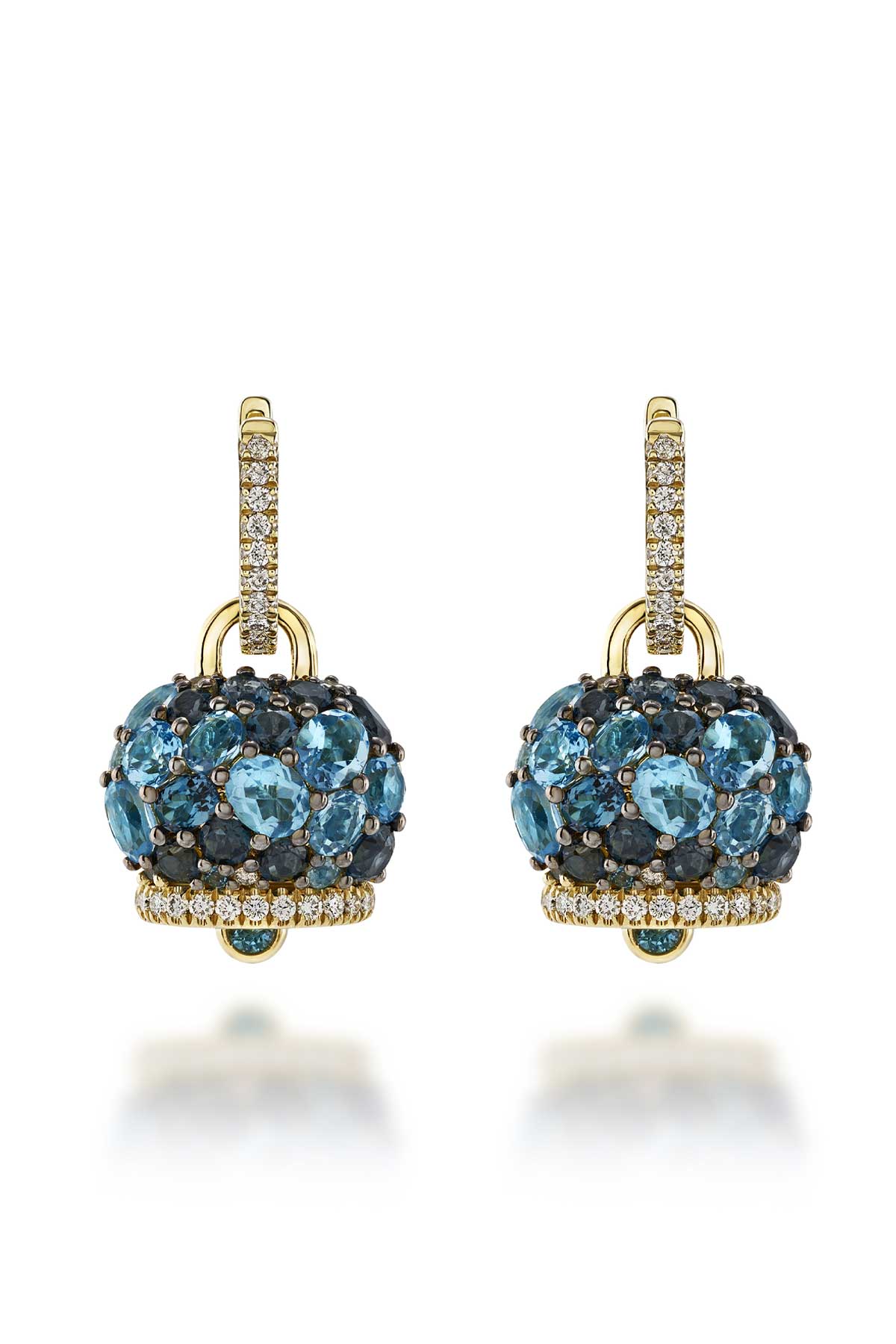 Medium Campanella 9kt yellow gold earrings topaz and diamands
