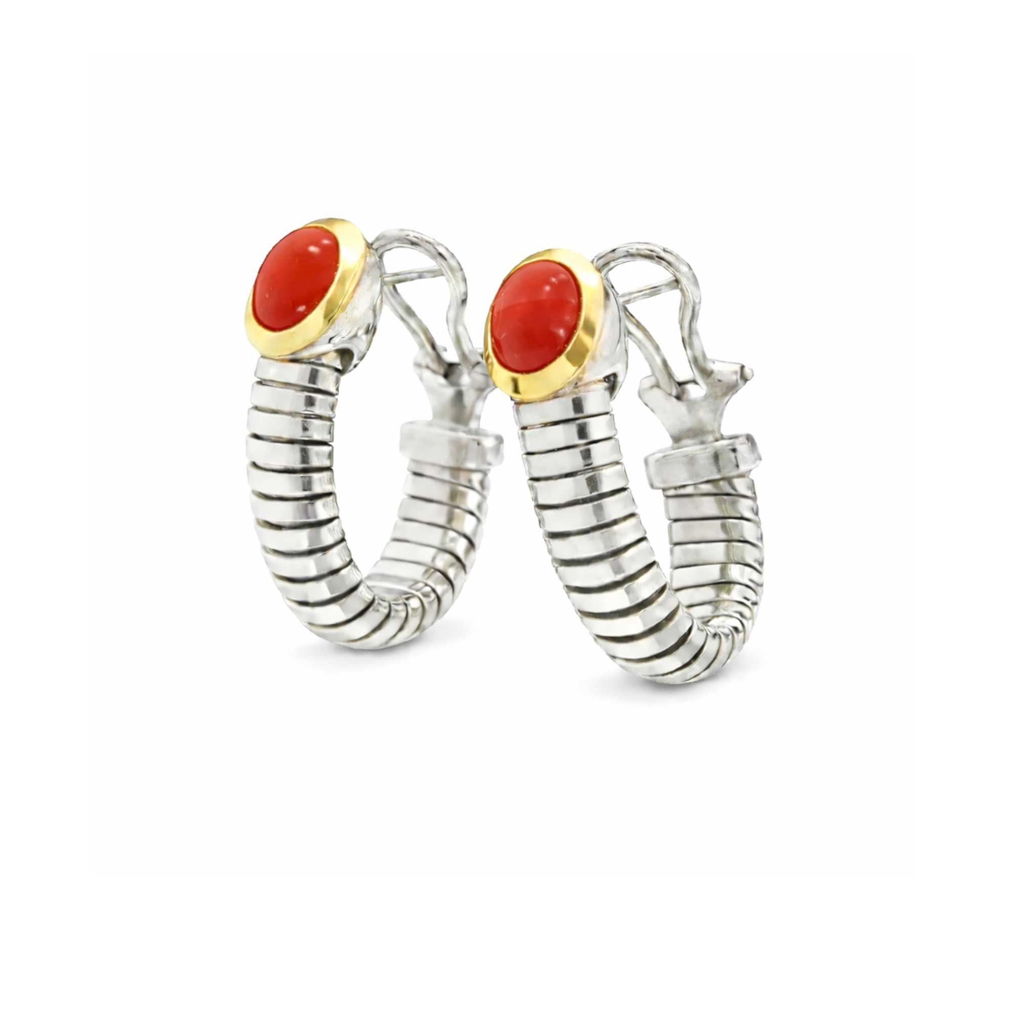 TUBOGAS SILVER EARRINGS GOLD AND CORAL PENDANTS