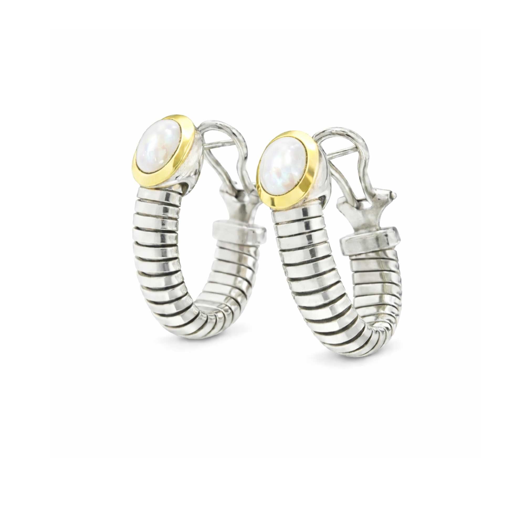 TUBOGAS SILVER EARRINGS WITH GOLD AND MOTHER-OF-PEARL THREADS