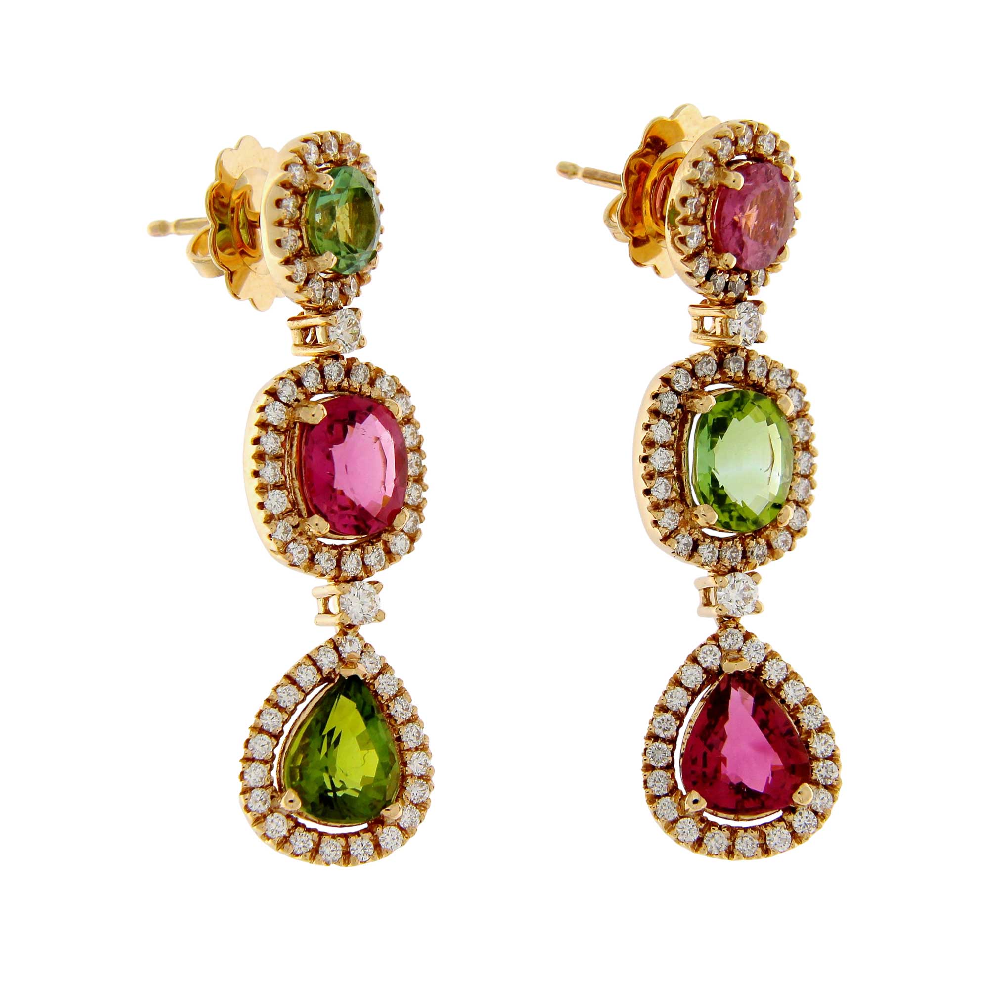 Unica rose gold earrings with Peridot and pink tourmalines 7.77 ct