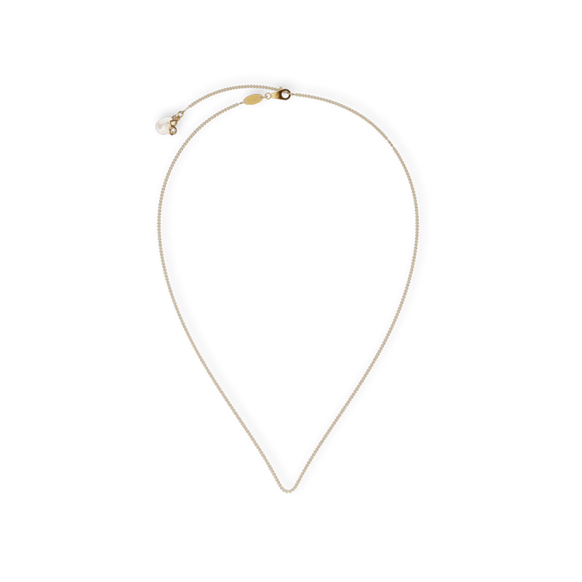 This necklace is composed of a thin “belcher” chain. A teardrop pearl, with the DG letters, graces the terminal of the adjustable chain.