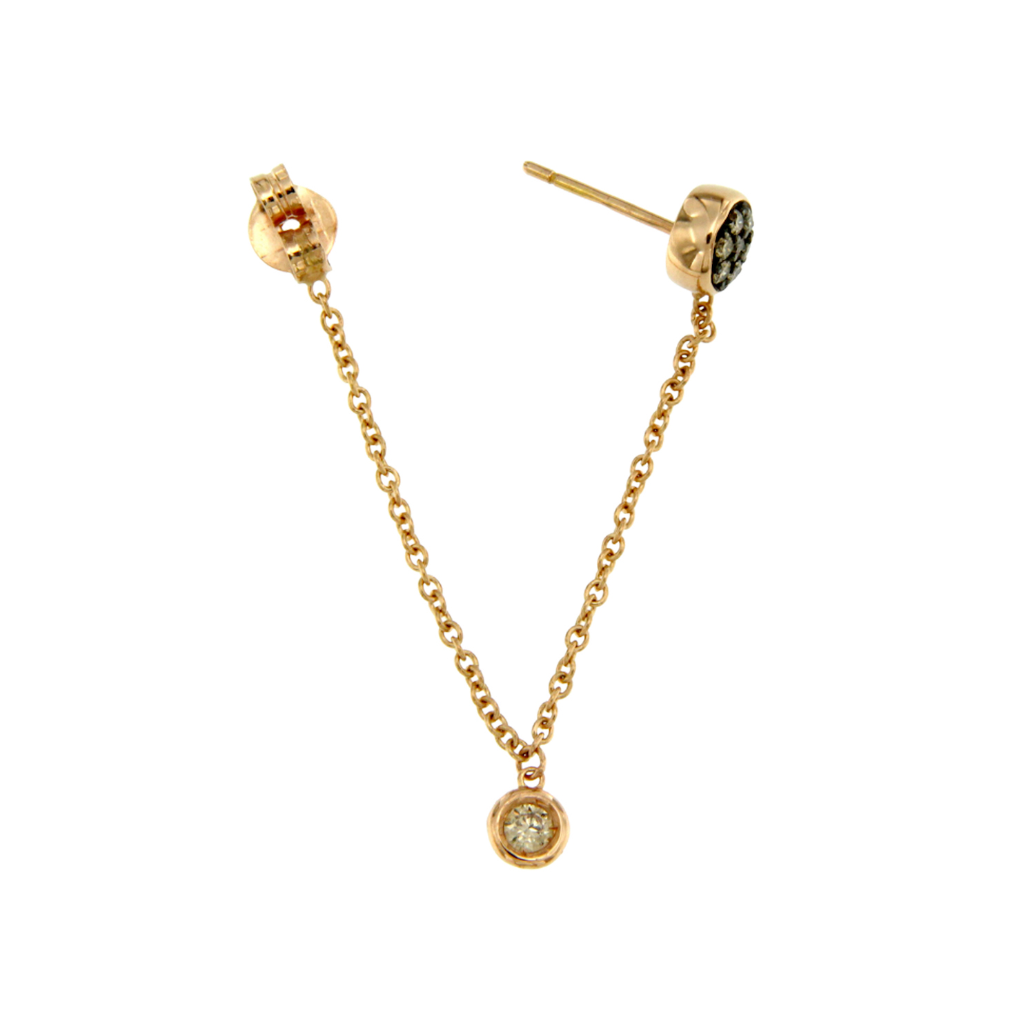 SKU: GAI_OR_07_BRRose gold earrings with chain, brown diamonds