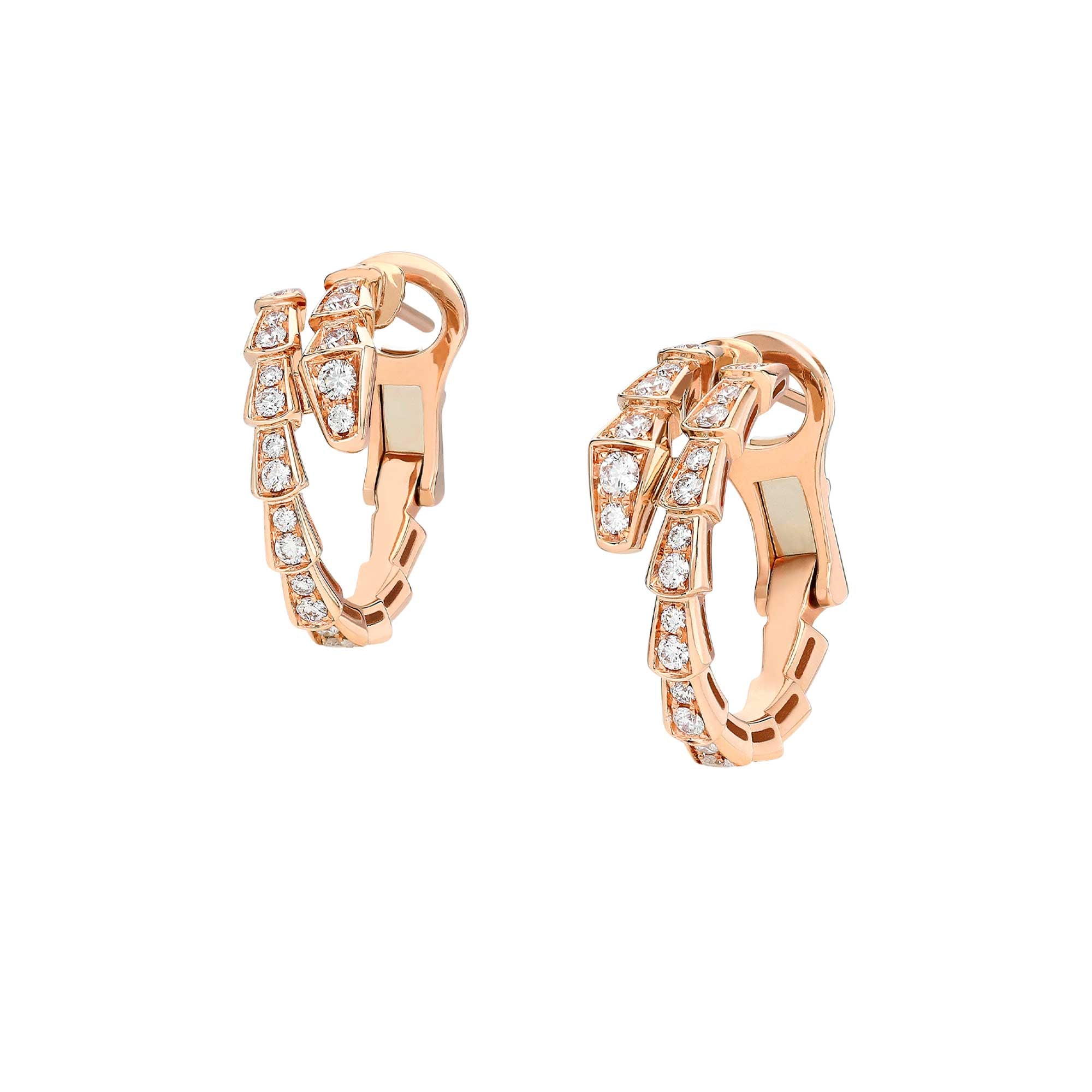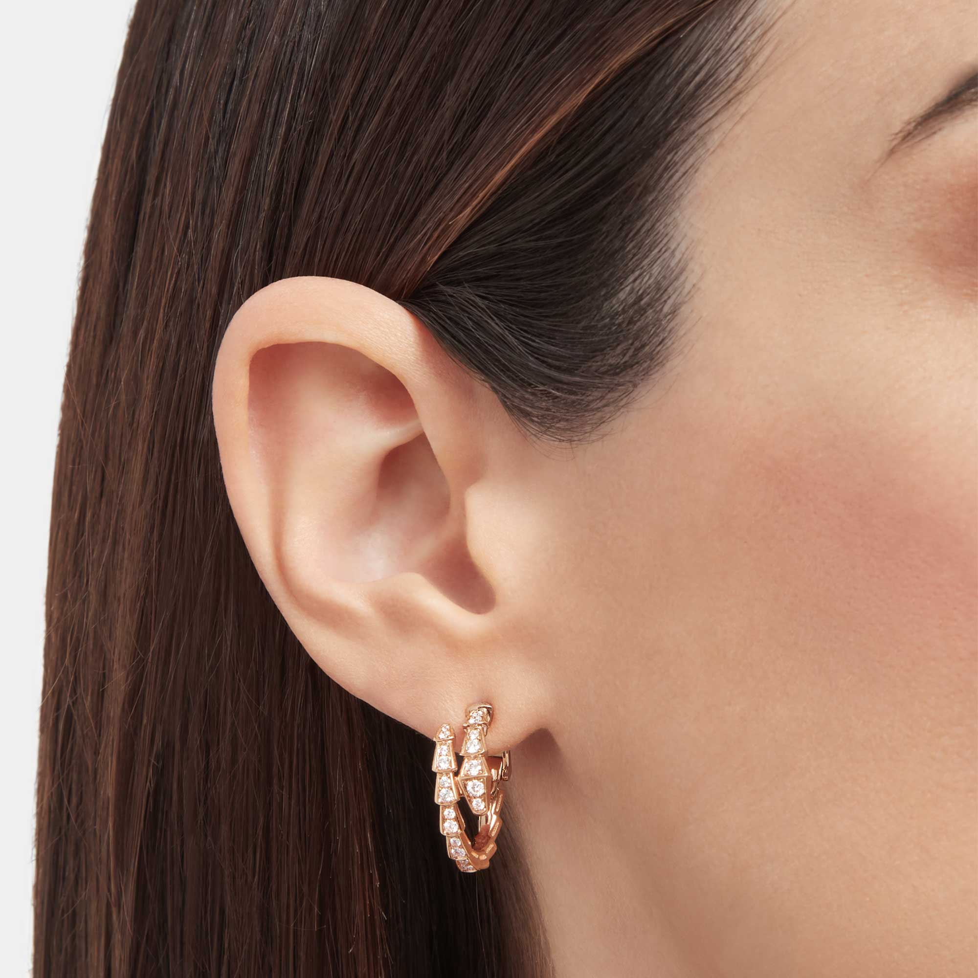 Serpenti Viper 18 kt rose gold earrings set with pavé diamonds.