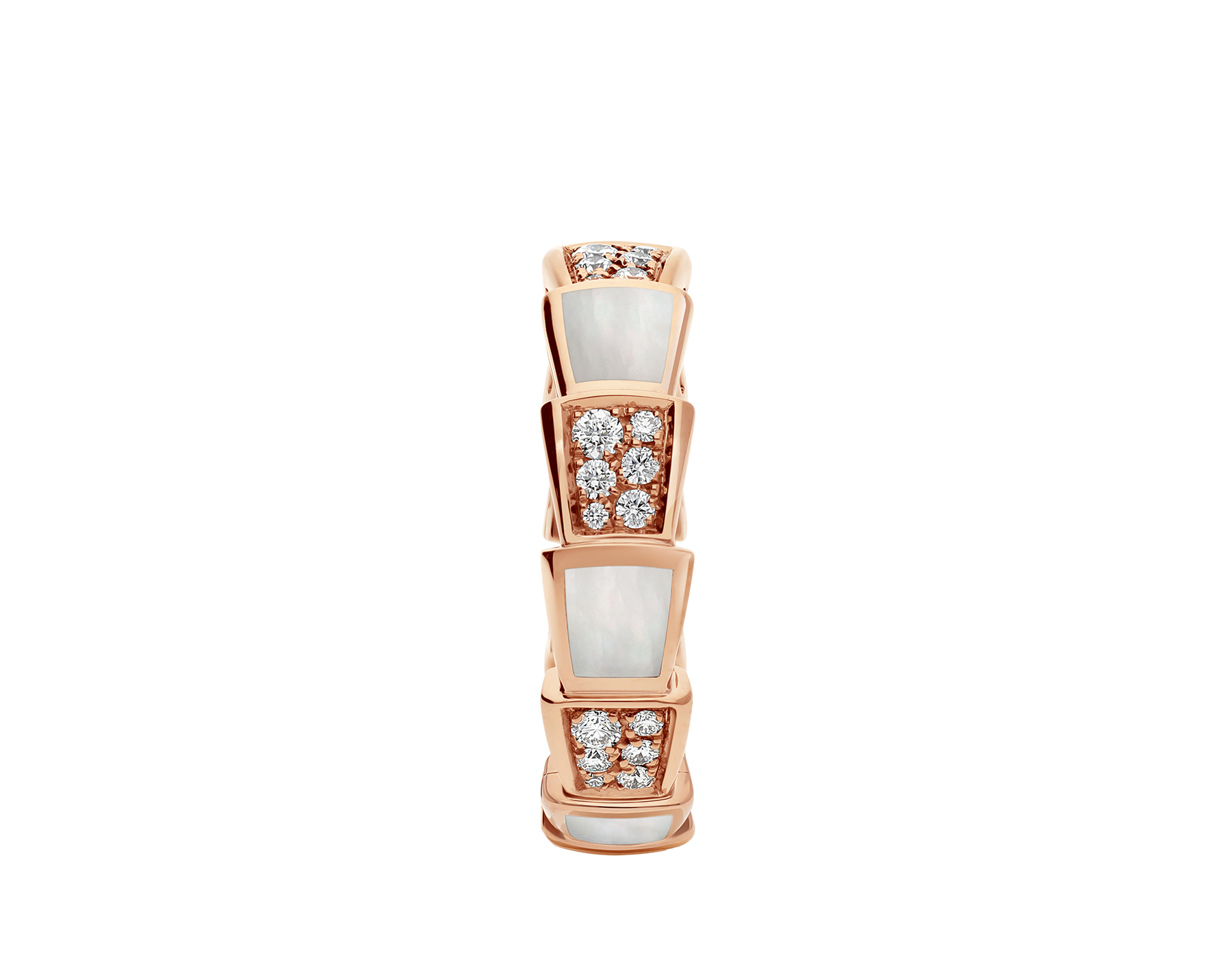 Serpenti Viper band ring in 18 kt rose gold, set with mother of pearl elements and pavé diamonds.