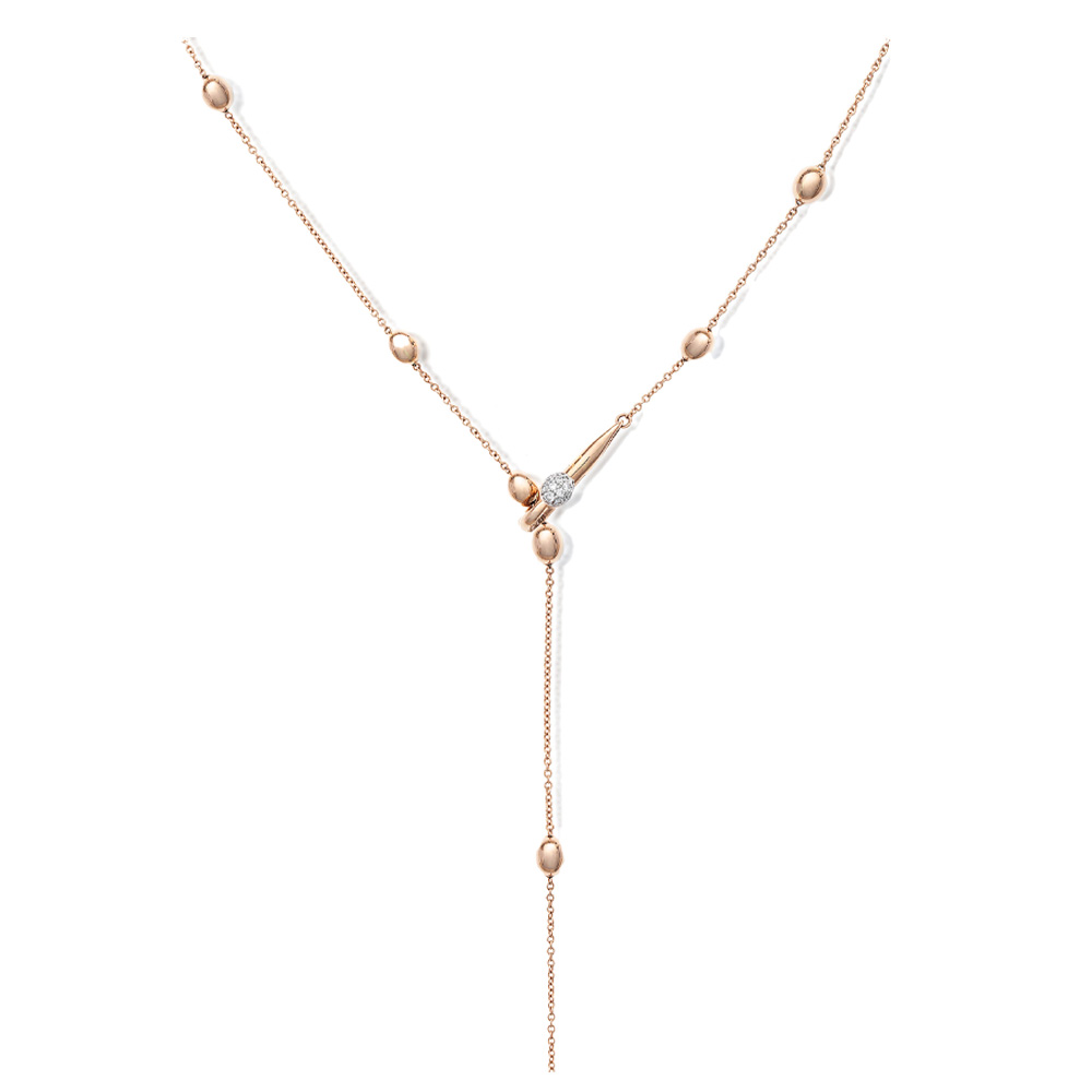 18kt rose gold boules chase each other in this fresh, contemporary necklace characterized by our unmissable versatility. The hook closure crowned by a refined diamond detail, summa of aesthetics and functionality, opens and closes like a spring, allowing you to adjust and interpret the necklace in the most varied ways. You can choose between a smooth, more classic interpretation, linking the closure to one of the final boules, or a more transgressive one, opting for a more high-necked version. A versatile and light jewel, and capable of adapting to all your facets!