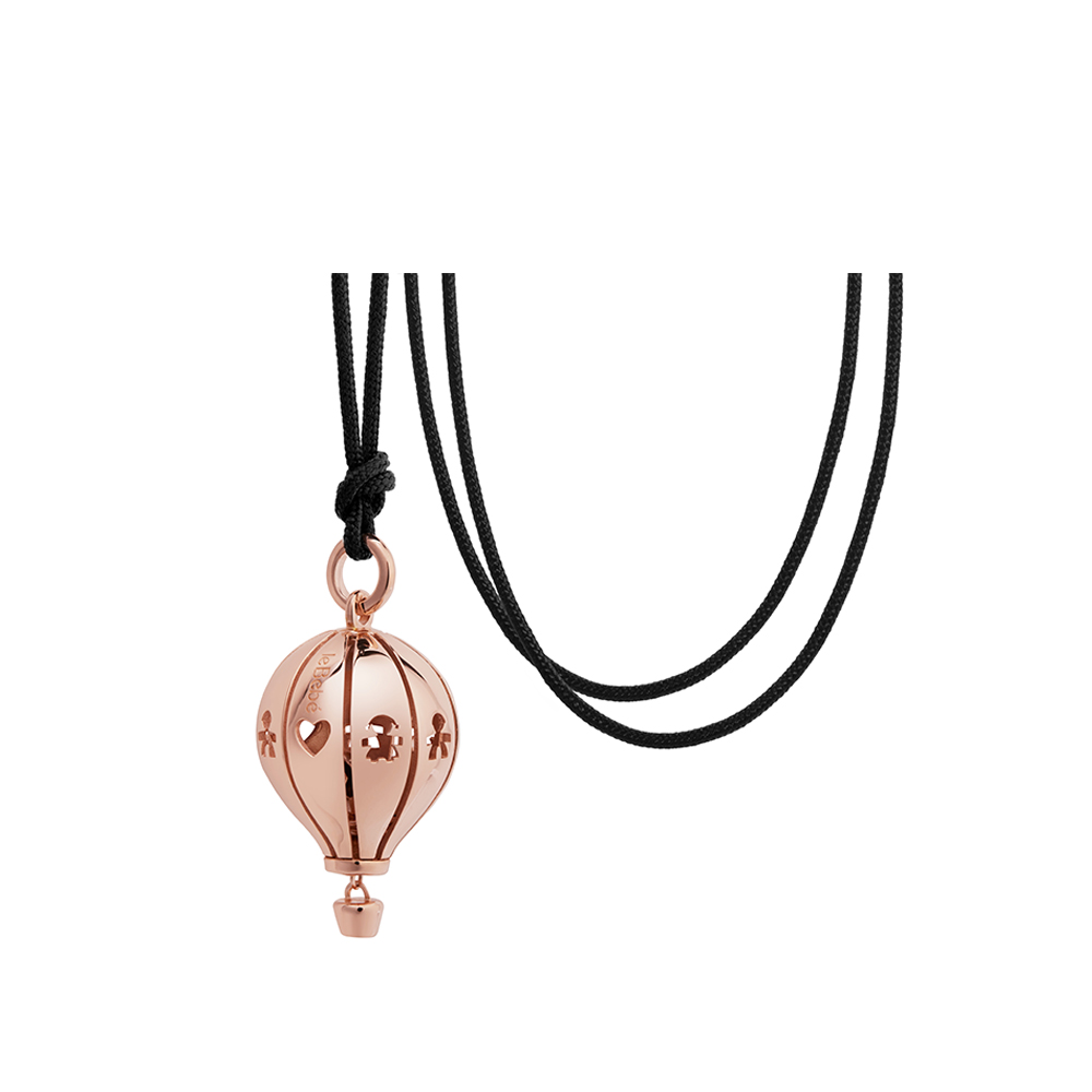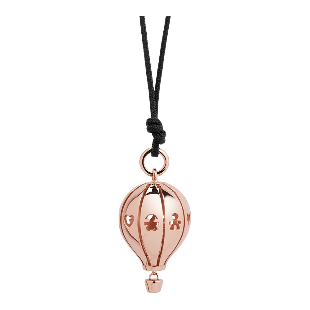 Le Mongolfiere pendant in rose gold-plated silver, on black eco-friendly cord.