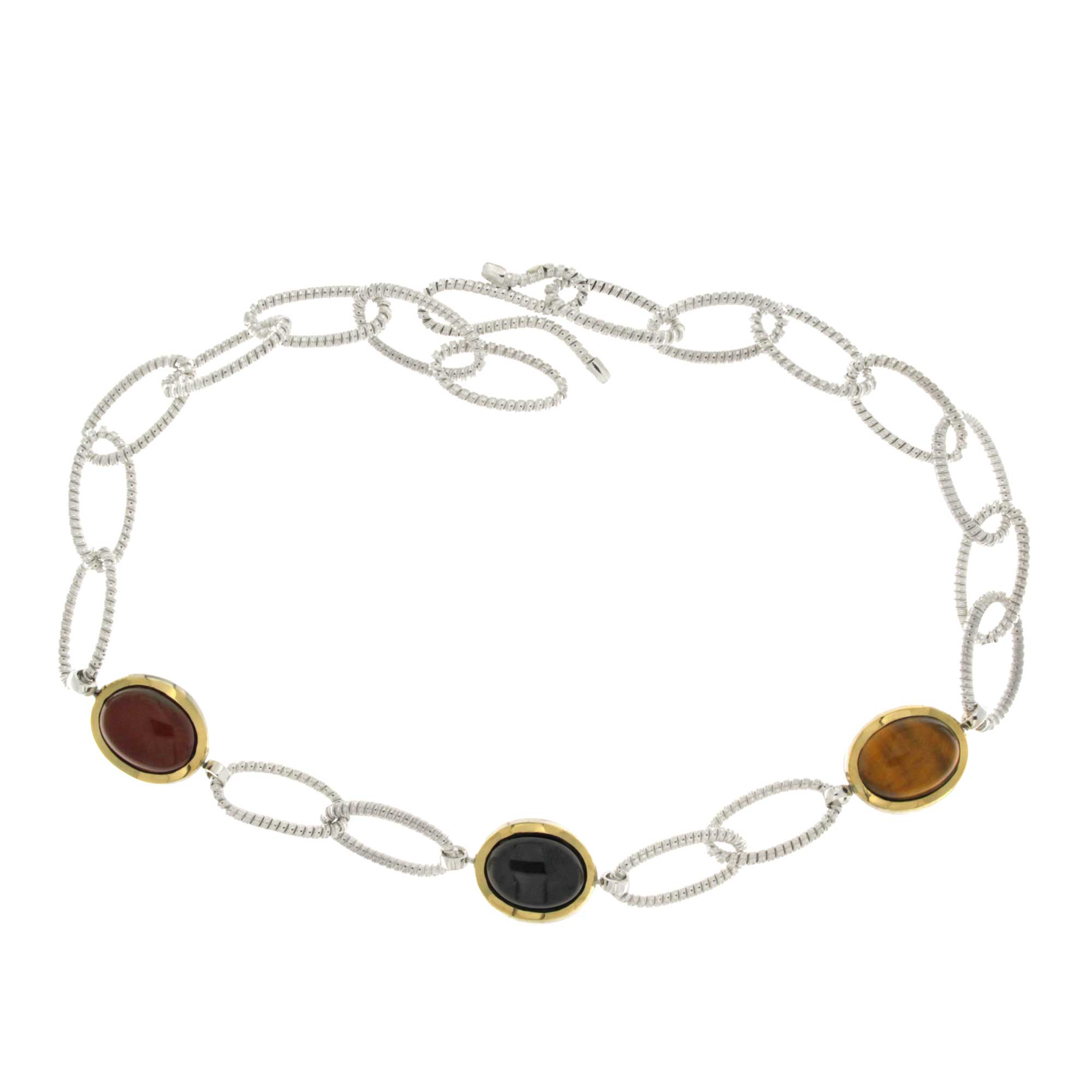 Tubogas link chocher necklace with 3 natural double face stones