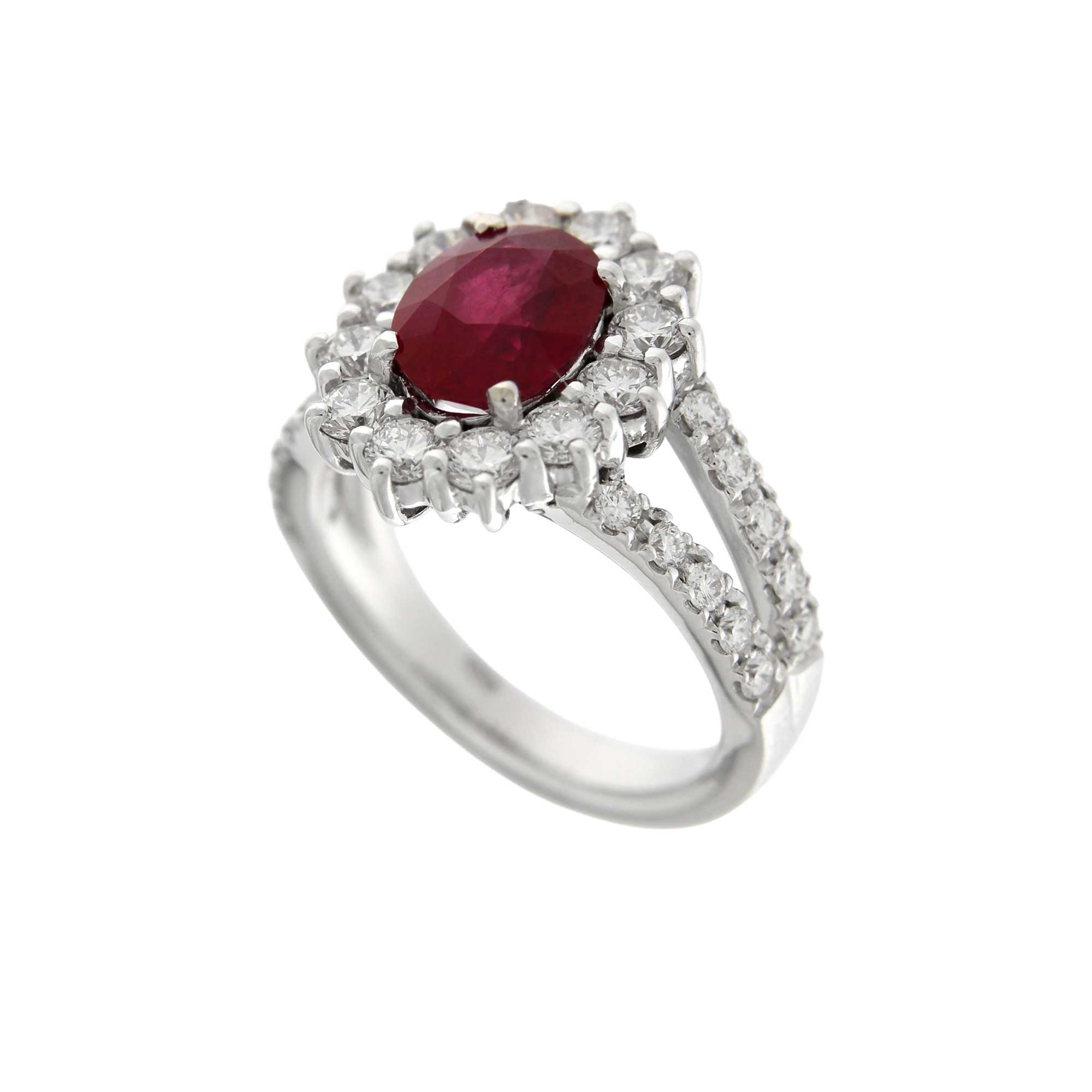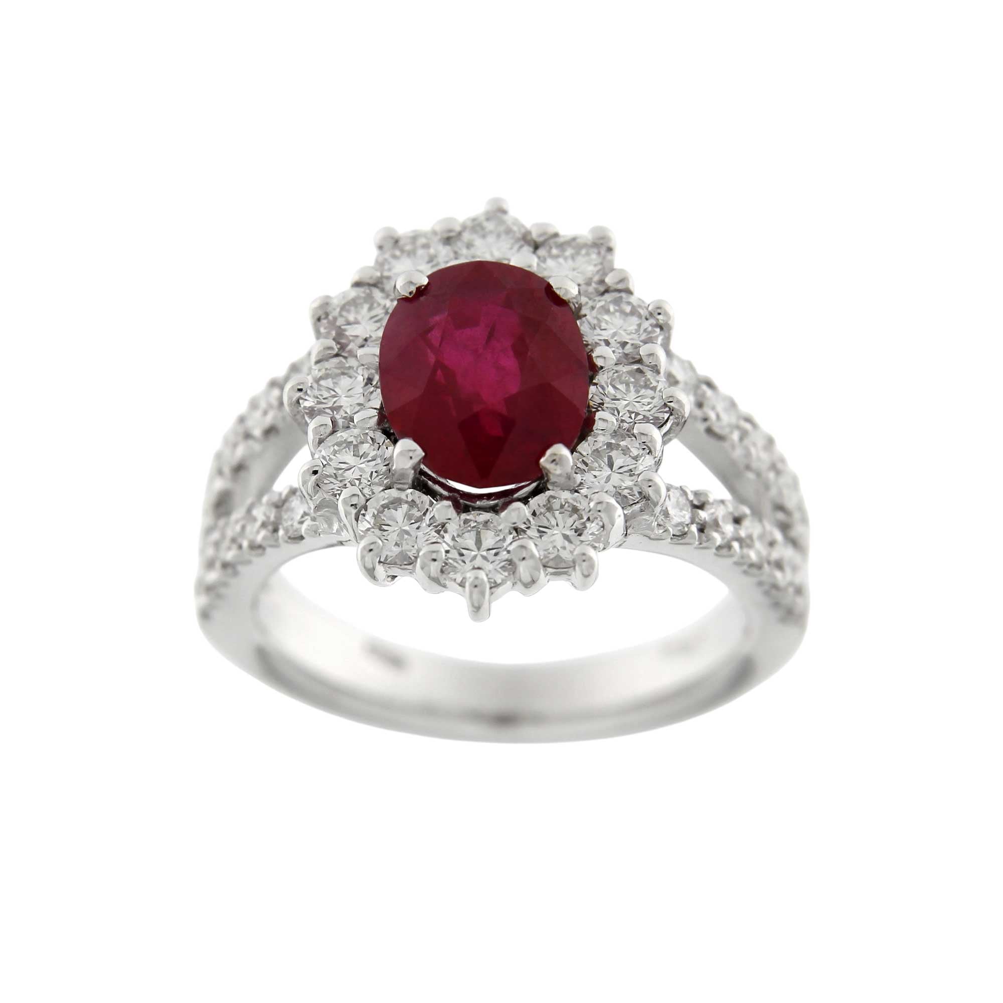 WHITE GOLD DOUBLE SHANK STARS RING WITH CERTIFIED BURMESE RUBY CT.2.58