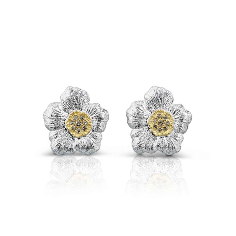 BLOSSOMS GARDENIA BUTTON EARRINGS SILVER BROWN DIAMONDS920,00€ -