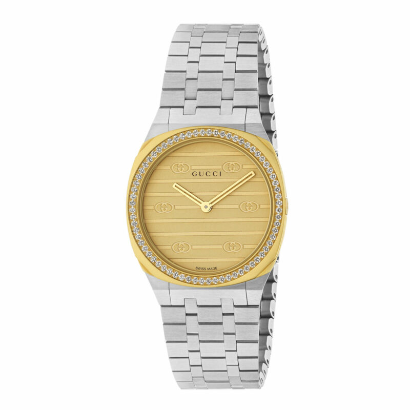 GUCCI 25H WATCH 30MM GOLDEN BRASS DIAL WITH INTERLOCKING G4.200,00€ -