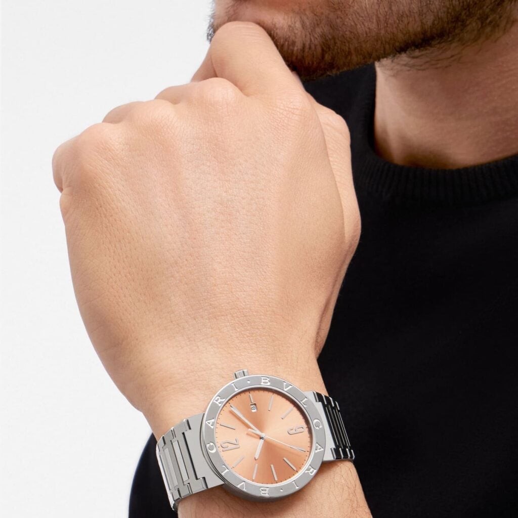 Evoluzione dell’iconico modello lanciato nel 1977, l’orologio BULGARI BULGARI in acciaio inossidabile lucido e satinato incarna pienamente più di quarant’anni di stile e audace creatività.