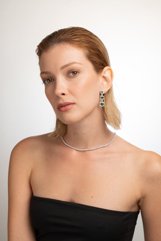 Lo stesso vale per questo modello, sempre pendente, questa volta in oro bianco e smeraldi.