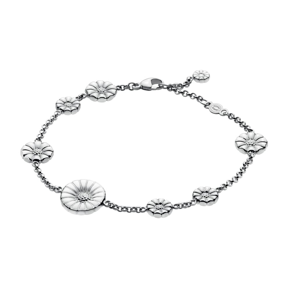 Quando nel 1940 nacque la principessa reale danese Margrethe, Georg Jensen creò una margherita d’argento per celebrare l’occasione. Questa ha ispirato la famosa collezione Daisy, una serie di collane, bracciali e orecchini accuratamente lavorati dal fascino naturale e fresco adatto a tutte le età. Gioielli in argento sterling rodiato e fiori smaltati. L’iconica Margherita di Georg Jensen cambia palette di colori e inaugura la collezione con un design nuovo, in collaborazione esclusiva con lo stilista di Copenhagen Stine Goya, che reimmagina l’ambita collezione in chiave contemporanea.