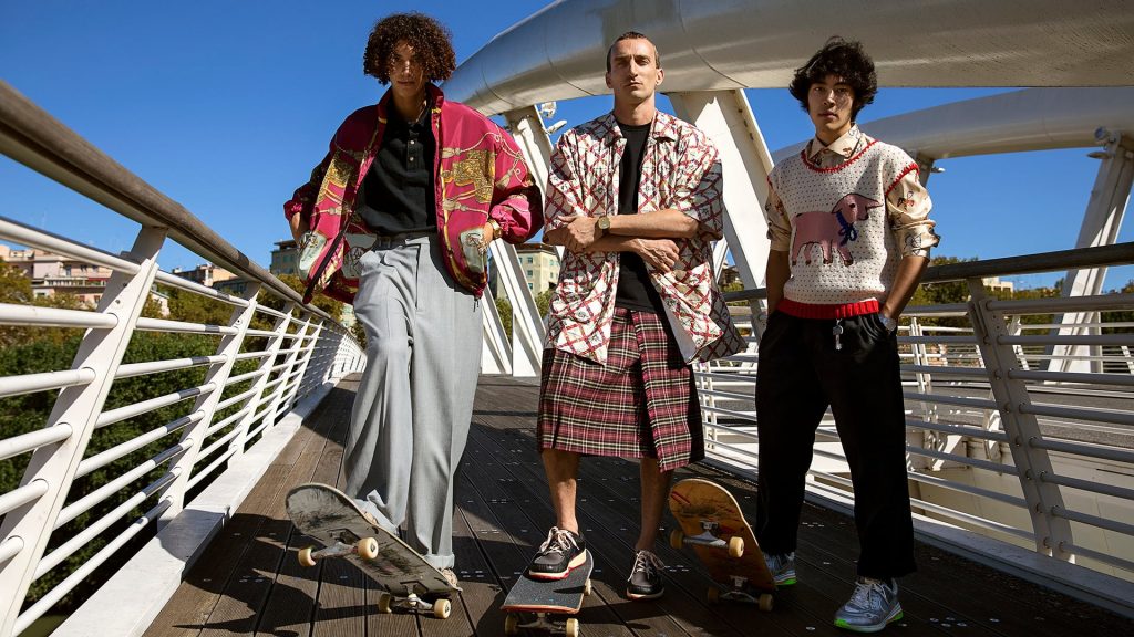parte con queer Unity, un gruppo californiano fondato dall’artista Jeffrey Cheung e da Gabriel Ramirez nel 2017. Unity organizza raduni in tutto il mondo e le immagini parte del progetto dedicato al Grip mostrano nello specifico il raduno che si è svolto a Parigi. Lo skater newyorkese Tyler Blue Golden è il protagonista delle immagini riprese del fotografo Noah Dillon, che vive a Los Angeles. Altre foto ritraggono giovani skater cinesi o di Seoul. A Tokyo, lo skater giapponese Shinpei Ueno lo ritroviamo con i suoi amici artisti e musicisti. A Roma, il fotografo Niccolò Berretta Orlando Miani, l’artista e skater protagonista della campagna Cruise 2020.
