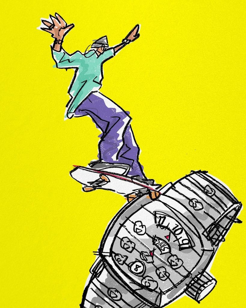 con contaminazioni skater è l’orologio della maison italiana, è nato dalla collaborazione tra skateboarder e artisti provenienti da diverse città del Mondo, che hanno voluto condividere azione, colore, movimento, innovazione e dinamismo. Alessandro Michele, direttore creativo di Gucci, sempre affascinato dalle realtà Street come fenomeno culturale, lancia Grip, un modello unisex ispirato dal griptape che gli skater usano sulle loro tavole. L’orologio infatti si avvolge con saldamente attorno al polso.