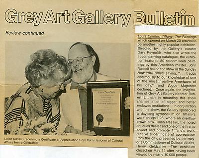 Esperta delle arti decorative del XX secolo ha donato la sua esperienza sia sul mercato che sulla storia di questi oggetti preziosi. Fu la prima a gestire le opere di Louis Comfort Tiffany, e divenne la sua più grande promotrice del risveglio dell’interesse per questi capolavori negli Stati Uniti. Ha pagato $ 176 per la sua prima lampada in bronzo e vetro di Tiffany nel 1956; prima della sua morte alcune lampade Tiffany valevano oltre 1 milione di dollari.