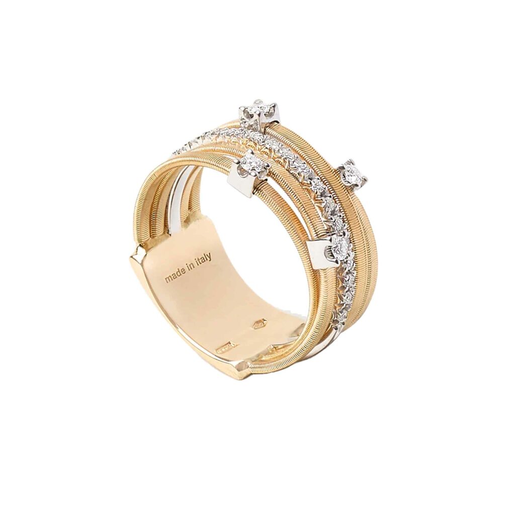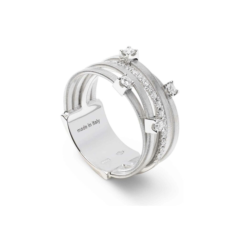 Ispirata all’arte e alla tradizione del leggendario popolo africano, la collezione MASAI si contraddistingue per uno stile rigoroso, pulito ed elegante, che non finisce mai di stupire nella sua essenzialità. Il segreto è dato dal coil, l’esclusiva lavorazione artigianale del filo ritorto che è uno dei segni distintivi del brand, arricchito da pavé di diamanti a taglio brillante.
