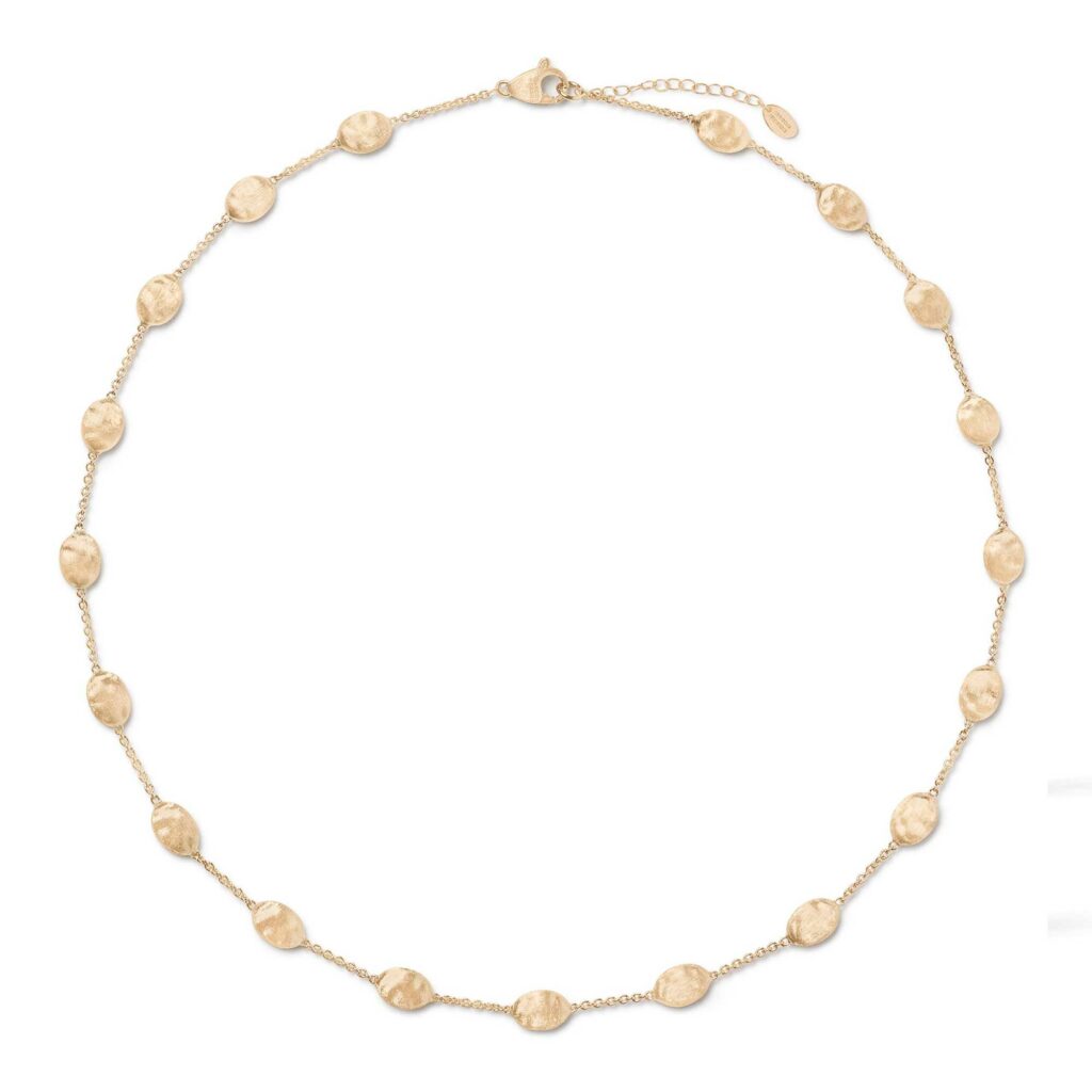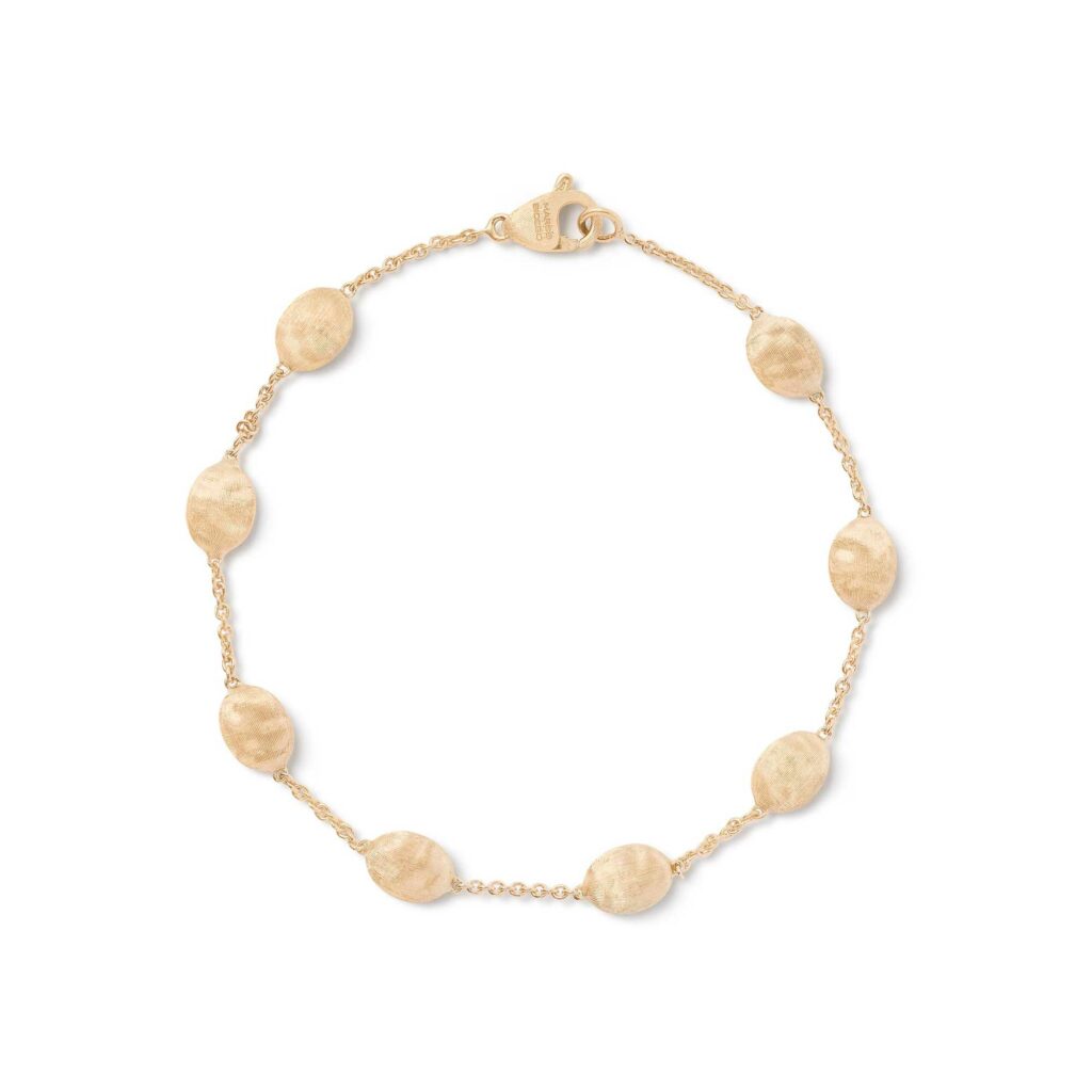 La collezione SIVIGLIA è un omaggio alla cultura andalusa ed è ispirata dalle sfumature e dalle tradizioni di questa città magica. Sottili catene d’oro giallo 18 carati intervallate da piccole ovaline baroccate, incise a mano e talvolta impreziosite da pavé di diamanti. Nell’insieme il design risulta essenziale e delicato, ma è reso speciale dalle forme irregolari e volutamente imperfette delle ovaline e dai riflessi vellutati dell’oro giallo inciso a mano, che restituisce un’infinita modulazione di luci e di toni.