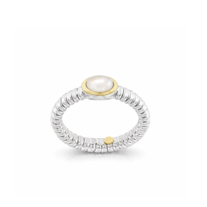 ANELLO TUBOGAS ARGENTO MEDIO FILO ORO MADREPERLA150,00€ -