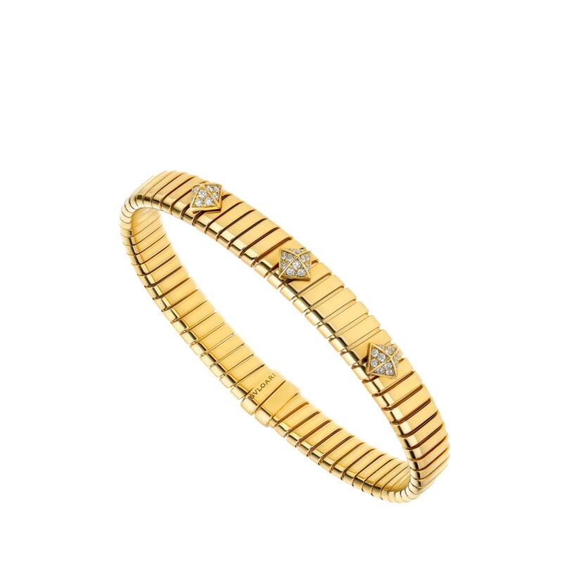 Bracciale Bvlgari Tubogas in oro giallo 18 kt con borchie con pavé di diamanti.13.100,00€ -